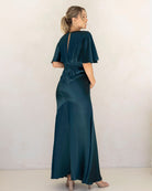Turn heads in the Camille Maternity Evening Dress, the ultimate choice for special occasions. Crafted in a satin-finish acetate blend, this maxi dress drapes beautifully and feels luxurious against the skin. The twist-front waist and flattering V-neckline create a sophisticated yet subtly sensual look, while the mermaid-style skirt flows gracefully to the floor. Finished with a high back and delicate button detail, this dress balances glamour with timeless elegance — perfect for wedding guest, evening events, formal dinners, or maternity photoshoots.