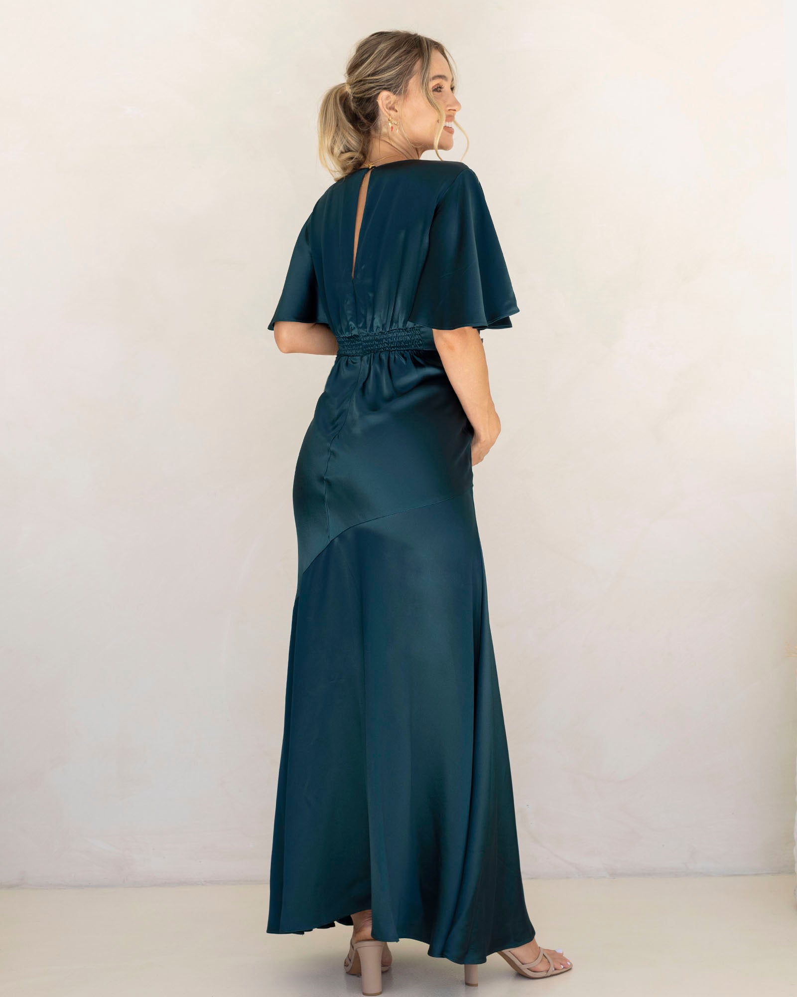 Camille Maternity V Neck Evening Dress in Hunter Green