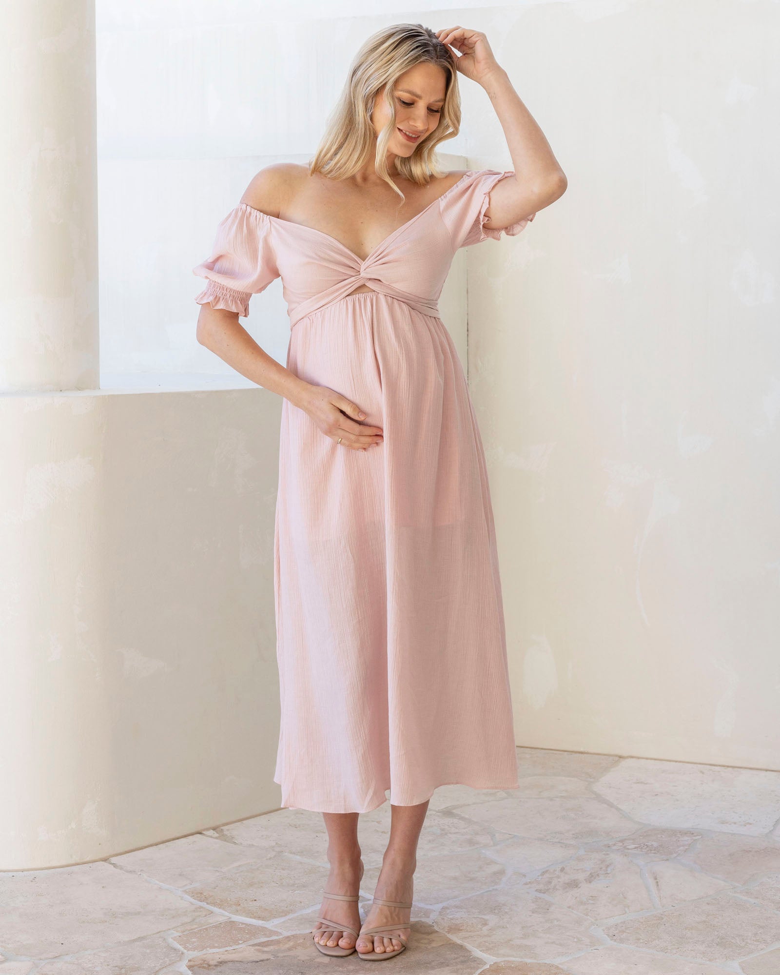 Fabia Reversible Tie Maternity Dress In Soft Pink