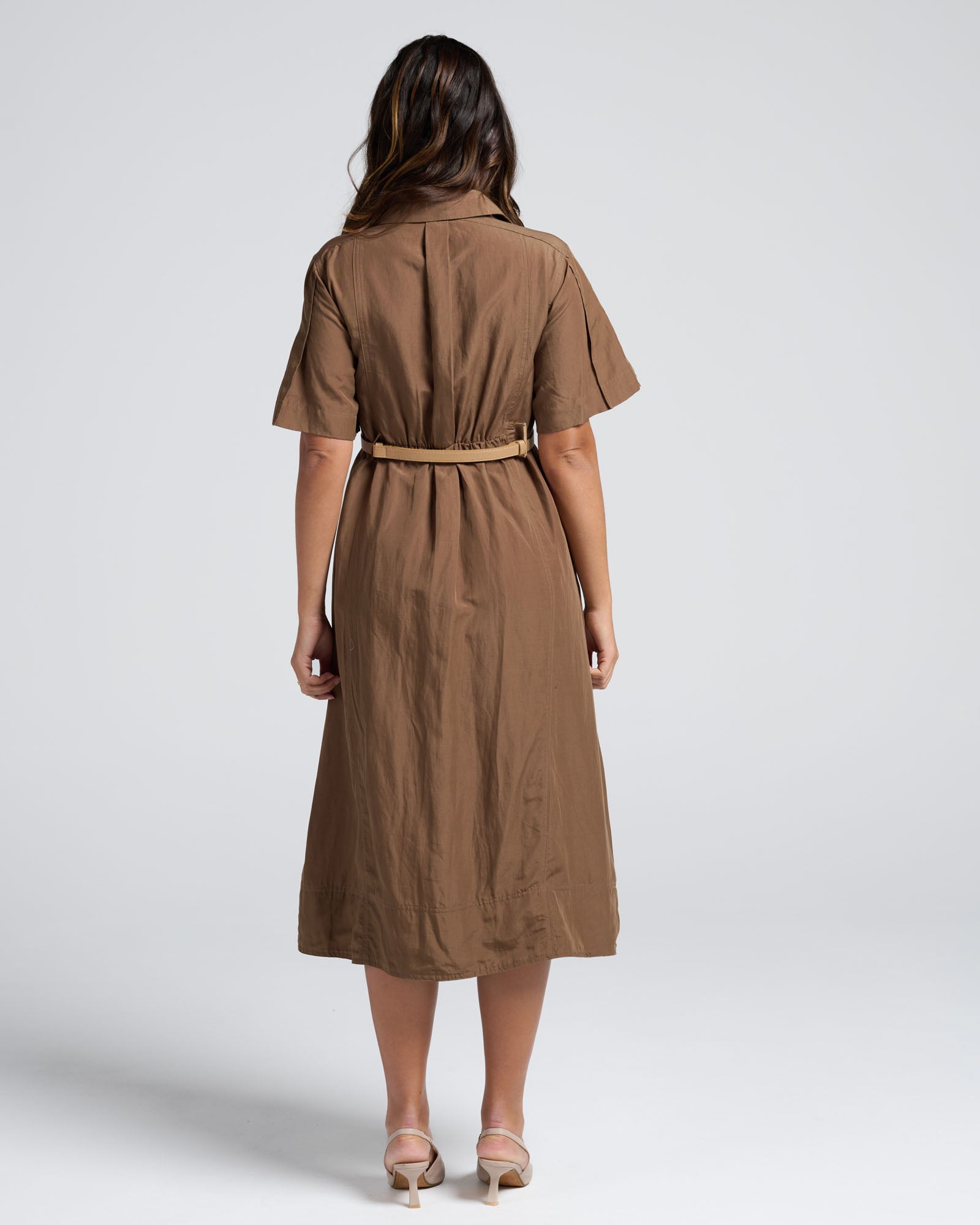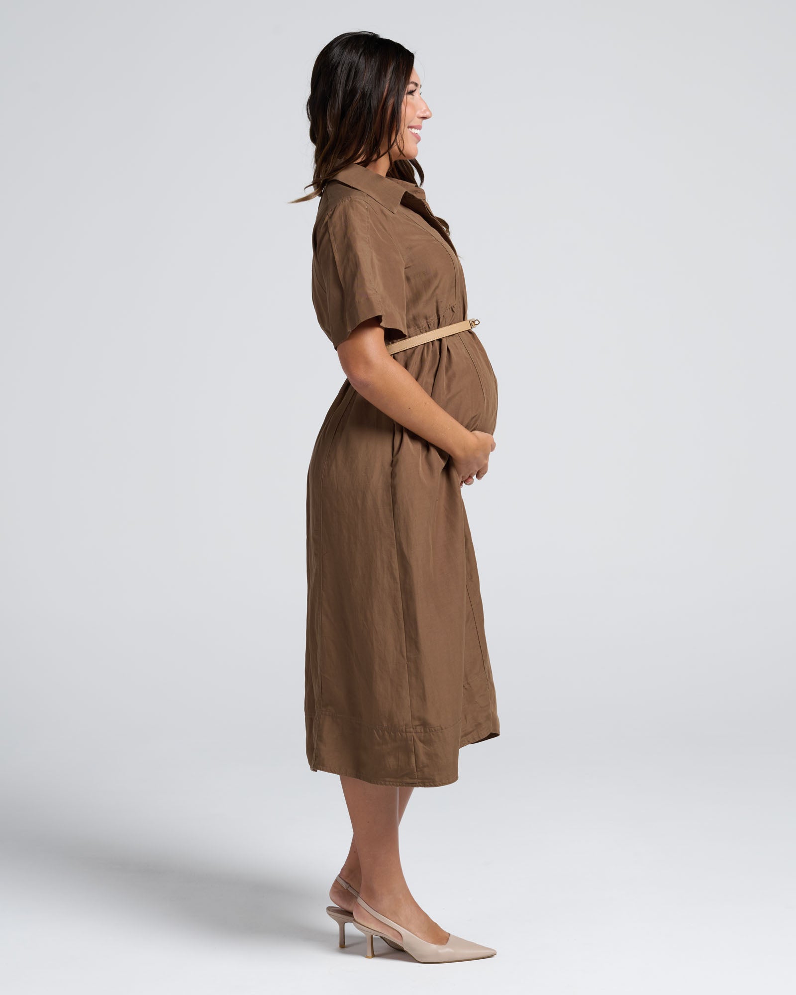 Sophia Maternity Belt Work Dress in Latte
