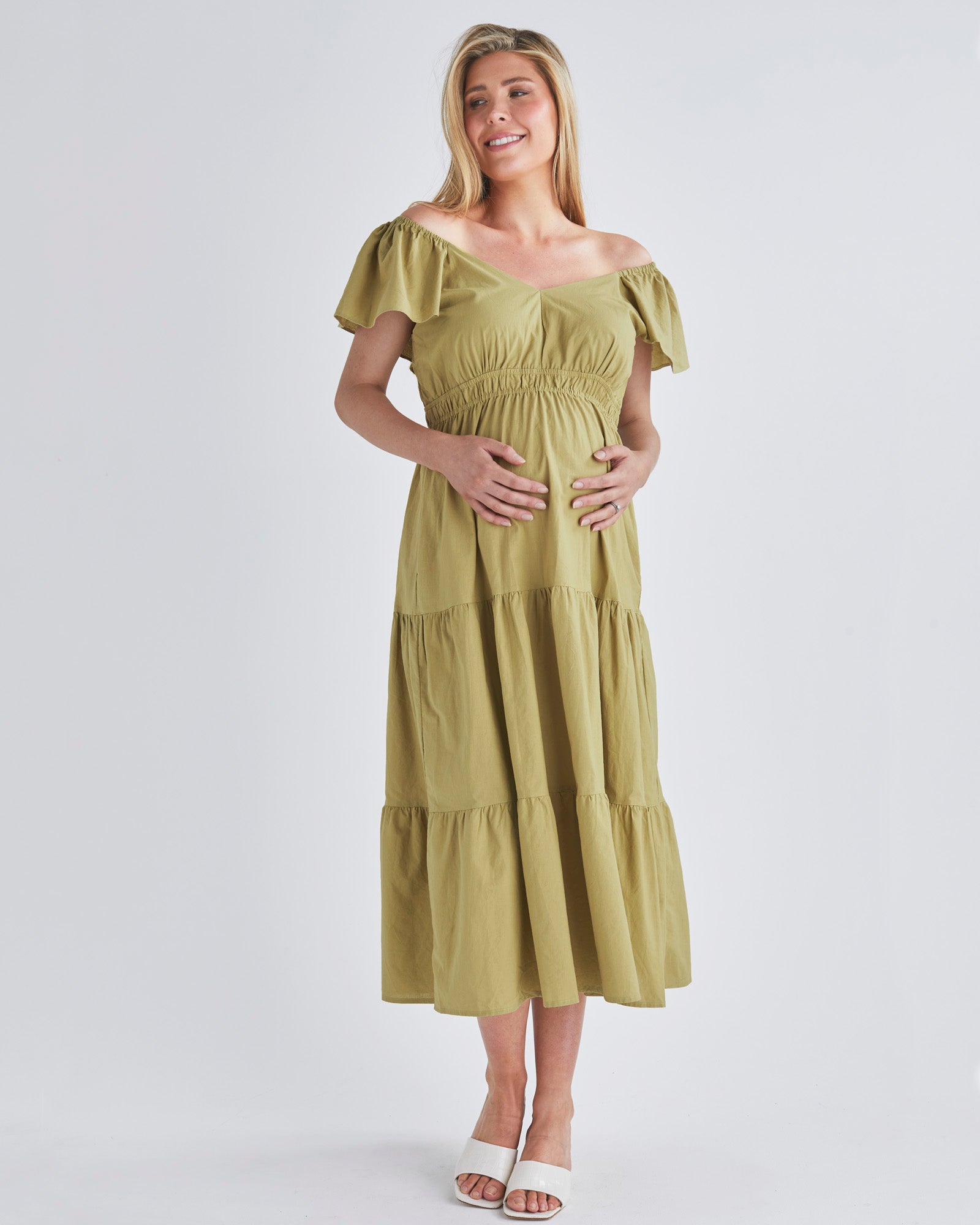 Our new Maternity dress is a stylish and comfortable dress that is perfect for pregnant women. The dress is made from a soft, flowy fabric that is perfect for the warmer months. The ruffled hem adds a touch of femininity, and the empire waistline is flattering for all body types. The dress is also nursing friendly.