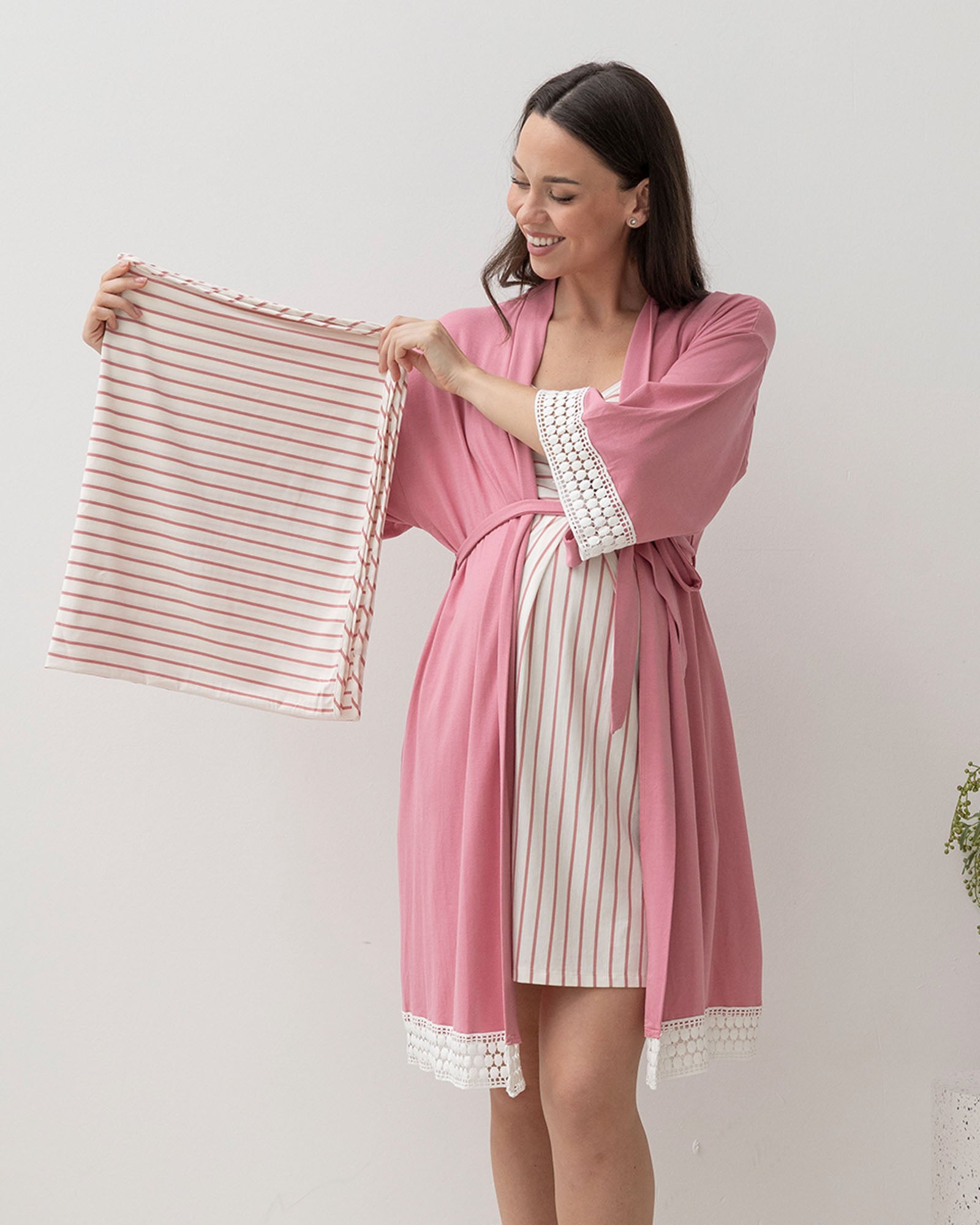 3-Piece Maternity Hospital Pack Set: Nursing nightie + Robe + Baby wrap In Pink