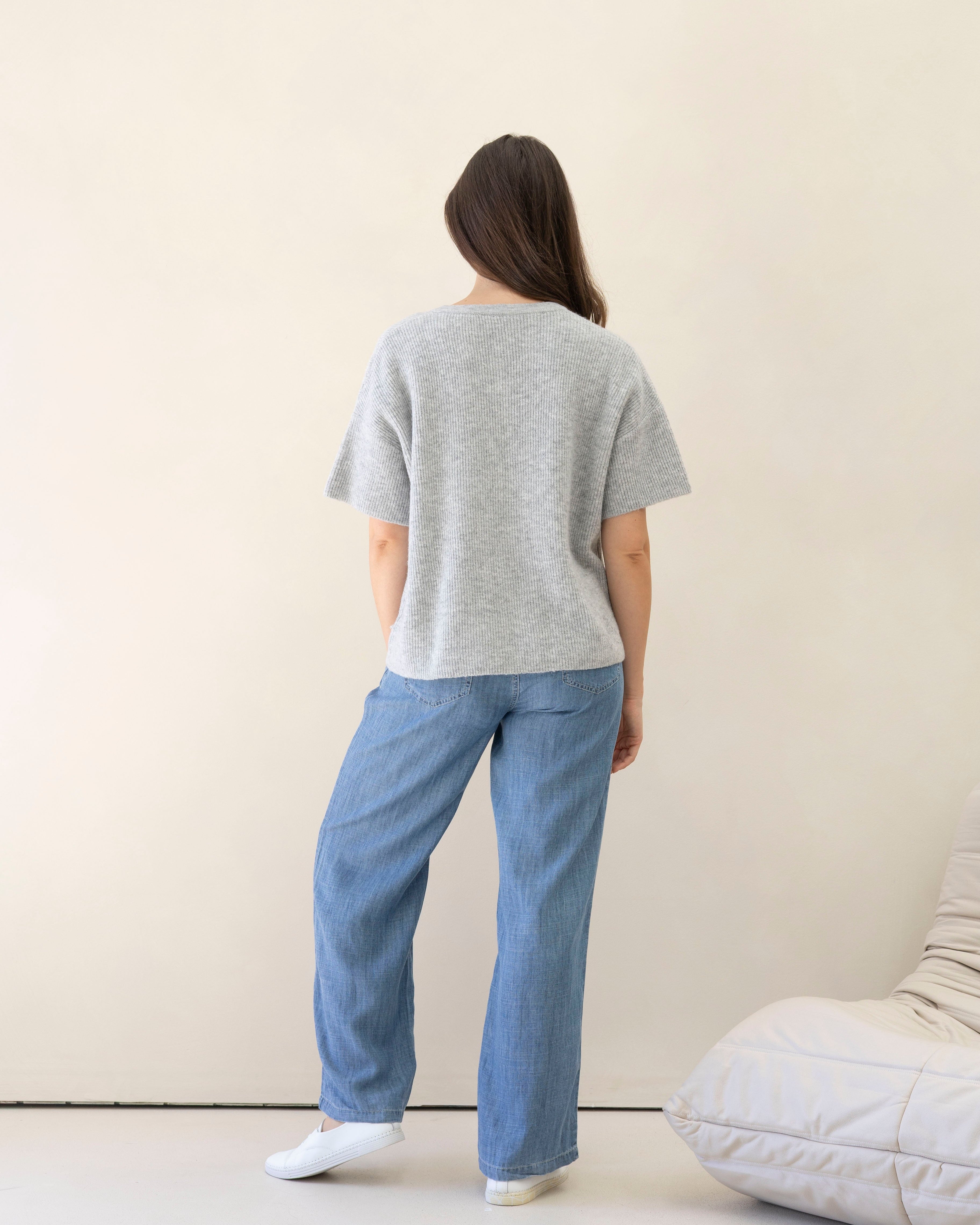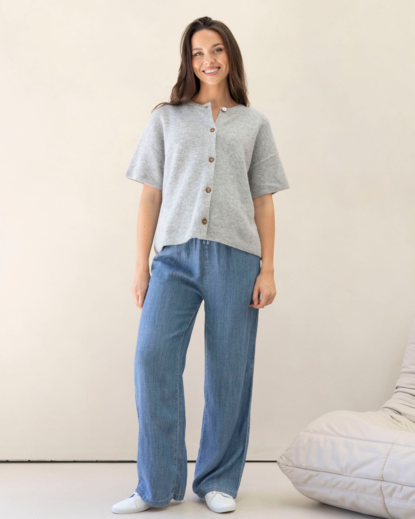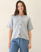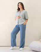 The button-front design allows for convenient nursing access, making it a practical choice for both maternity and postpartum. With its half-sleeve style and transeasonal weight, it’s perfect for layering on cooler days or wearing on its own for everyday comfort.