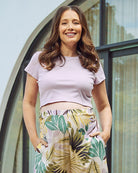 Our newest design Celia maternity crop tee is perfect for any occasion. The soft, white cotton fabric is perfect for pregnancy, and the cropped length shows off your growing belly. The relaxed fit is perfect for everyday wear, and the crew neckline is flattering on all body types.