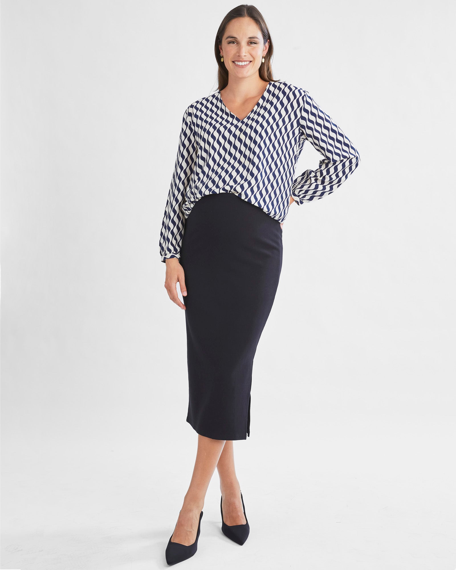 Ashley Geometric Wave-Print V-Neck Long-Sleeve Blouse