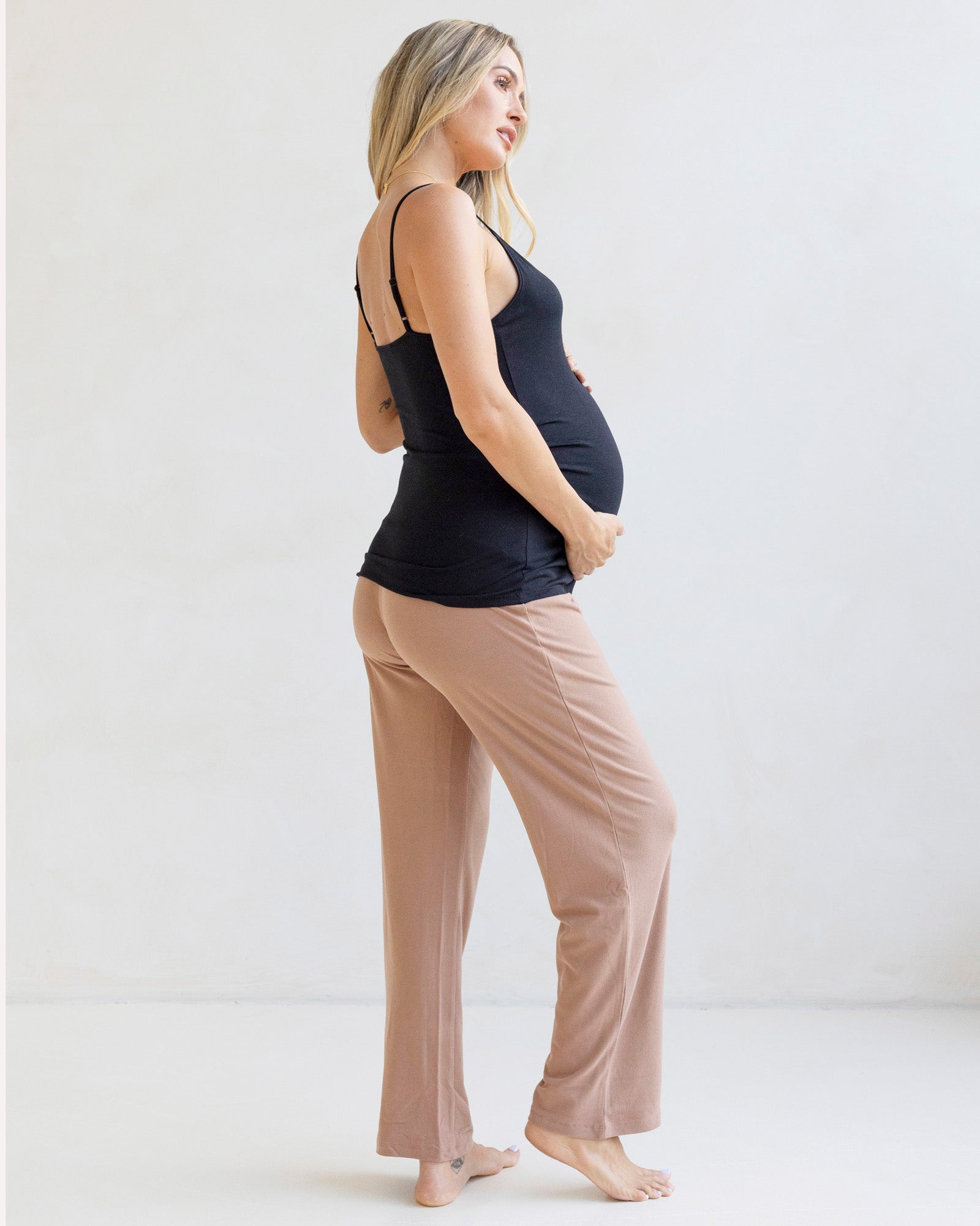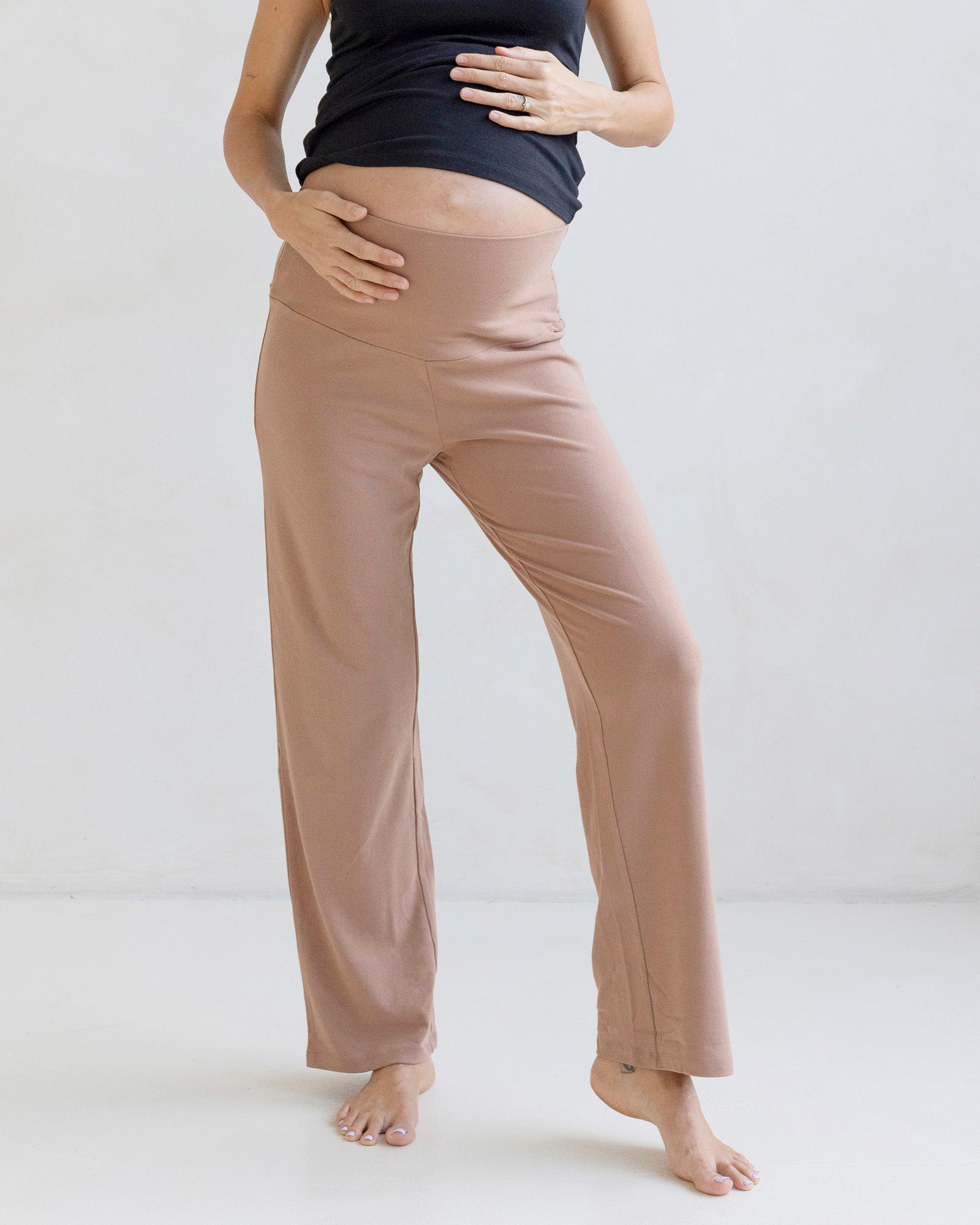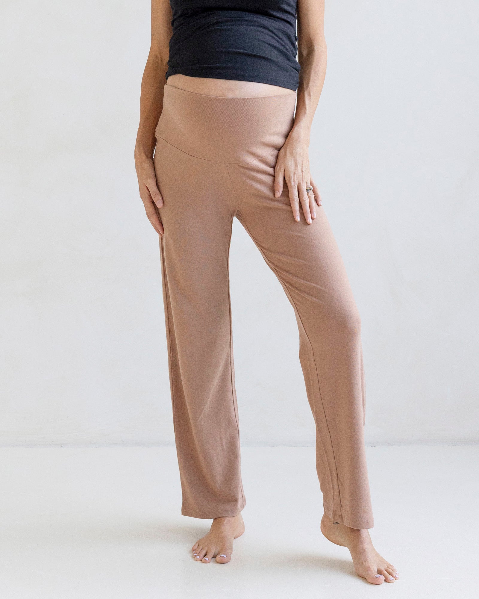 Debra Wide Leg Maternity Bamboo Pants in Taupe