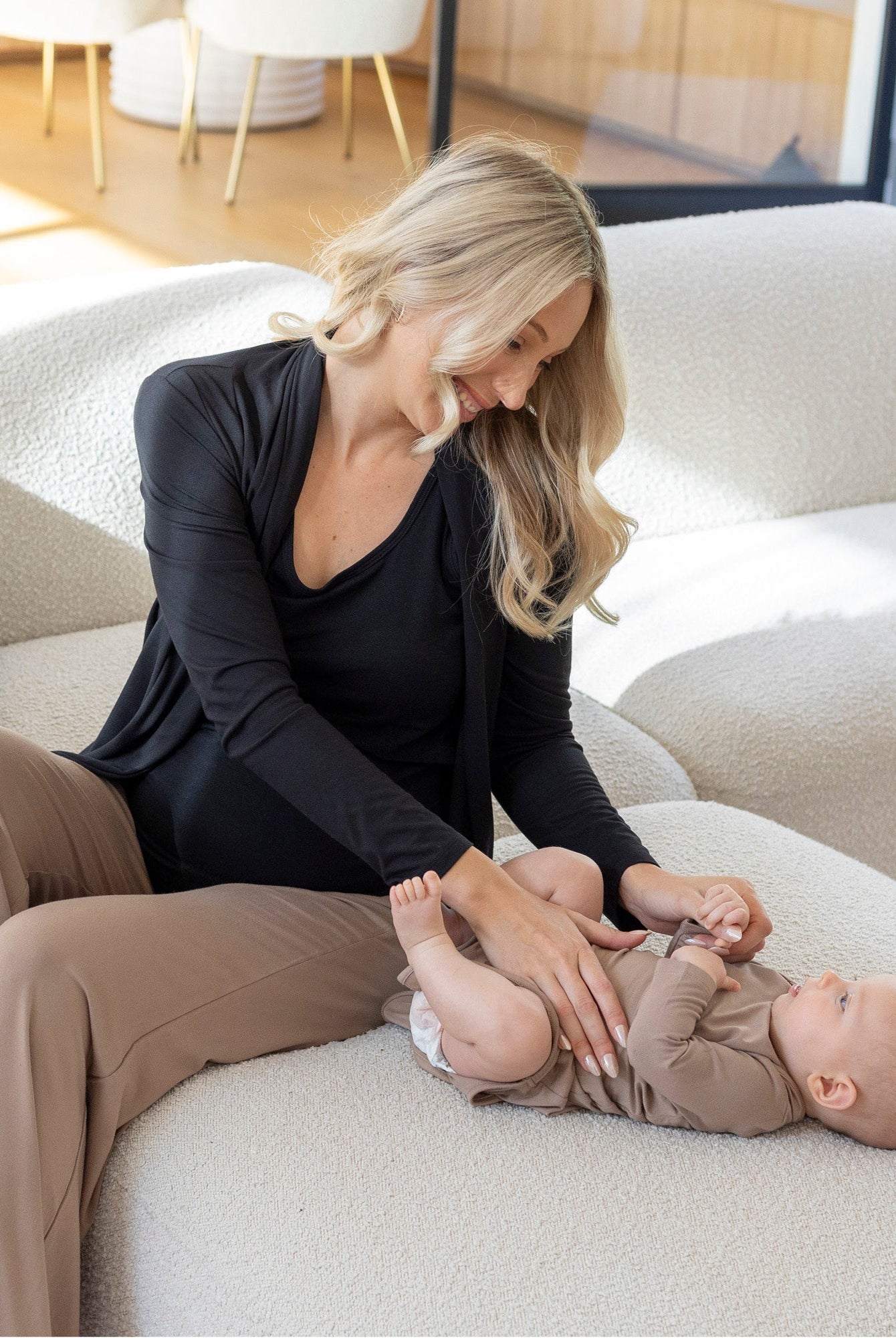 Made with fabric like cotton and bamboo for extra comfort, our fabric also has cleverly designed premium stretch so you can wear our maternity loungewear sets throughout every trimester of your pregnancy.