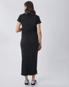 2 piece Maternity Ribbed Midi Dress with Short Sleeve Set - Black