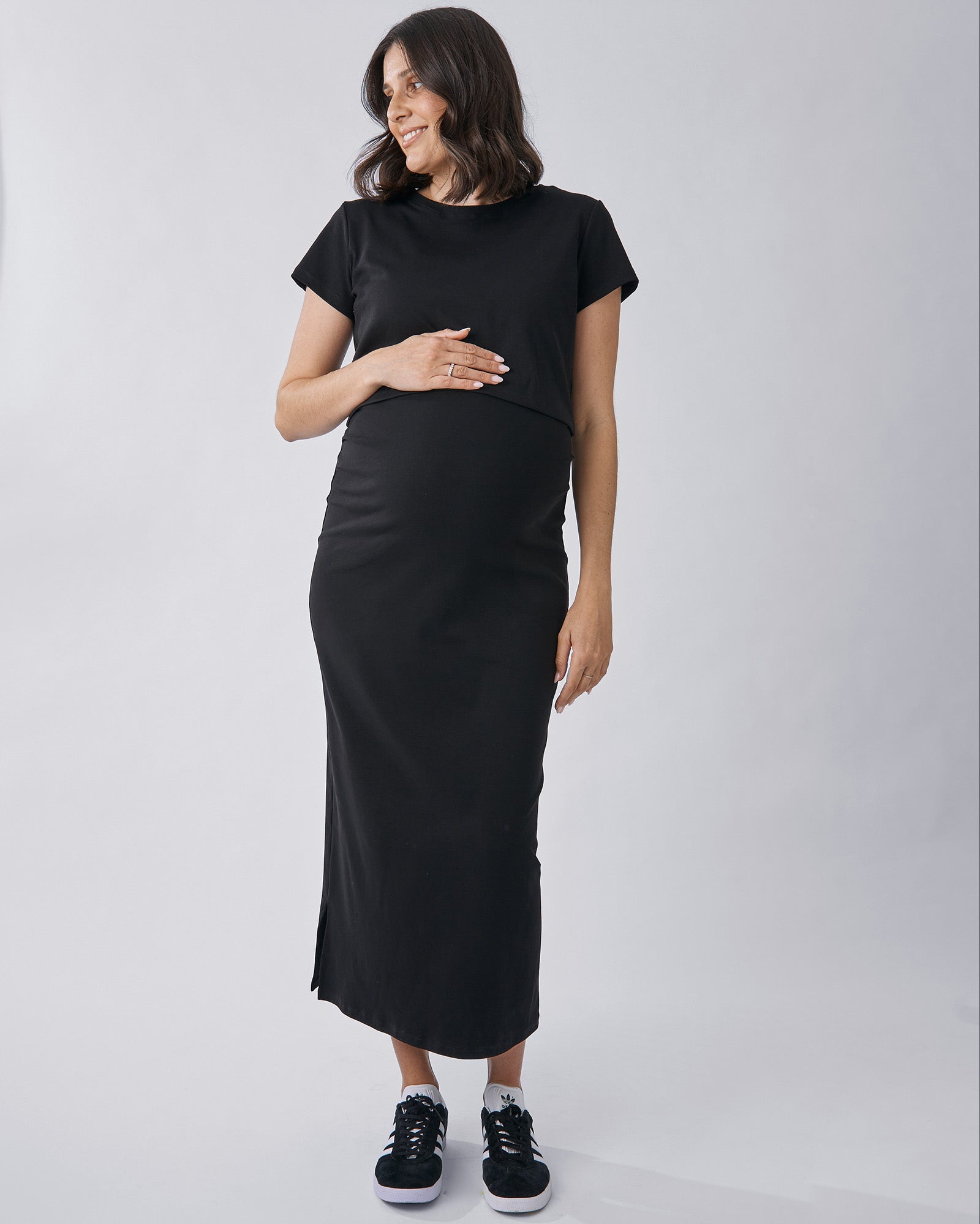One set in two looks, 2 piece Essential Maternity Set with maxi dress and cropped tee