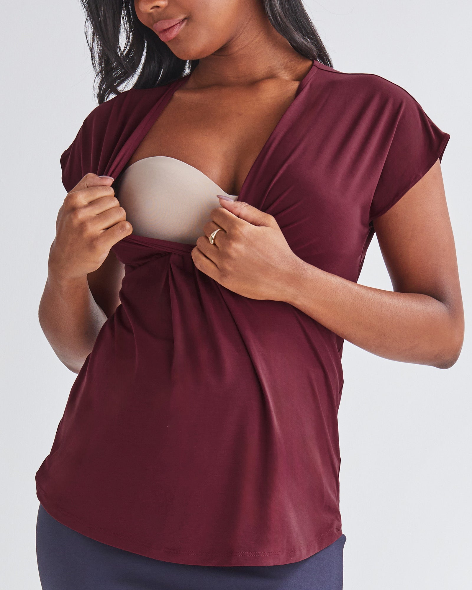 The Adeline Cross Over Maternity Work Top is the perfect work essential. With easy nursing access, it's perfect for office pumping or nursing sessions. Made from stretchy and soft, sophisticated fabric for comfort and style.