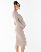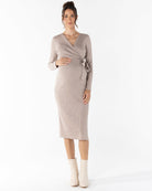 Angel Maternity's bodycon dress is perfect winter staple, it drapes effortlessly over your curves and offers plenty of stretch for every stage of pregnancy. With an elegant adjustable tie that will grow with you throughout your pregnancy. It is also breastfeeding friendly.