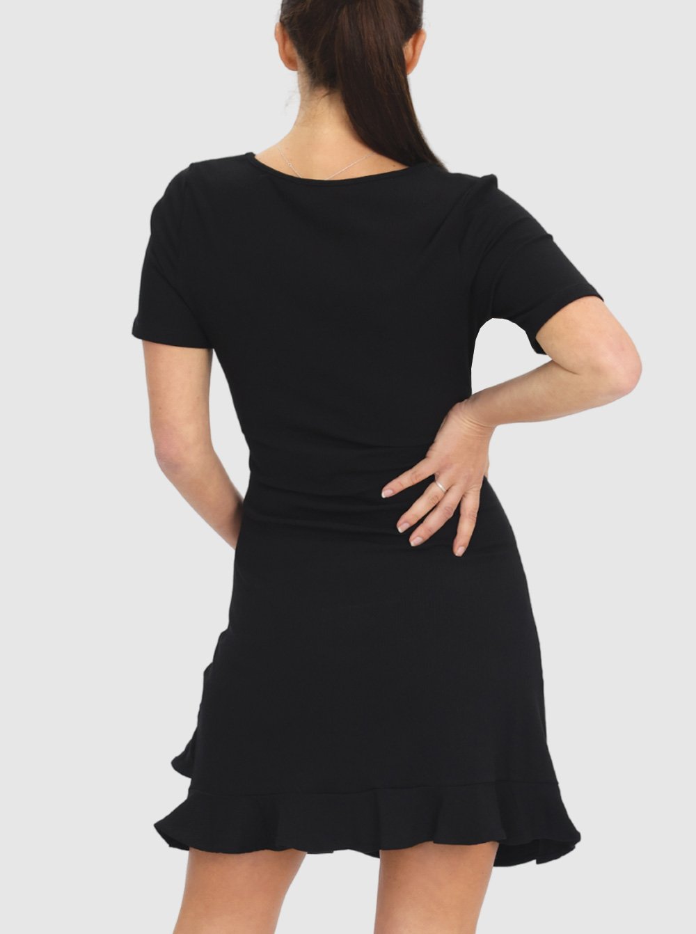 Thea Maternity Short Sleeve Frilled Dress in Black #D-6