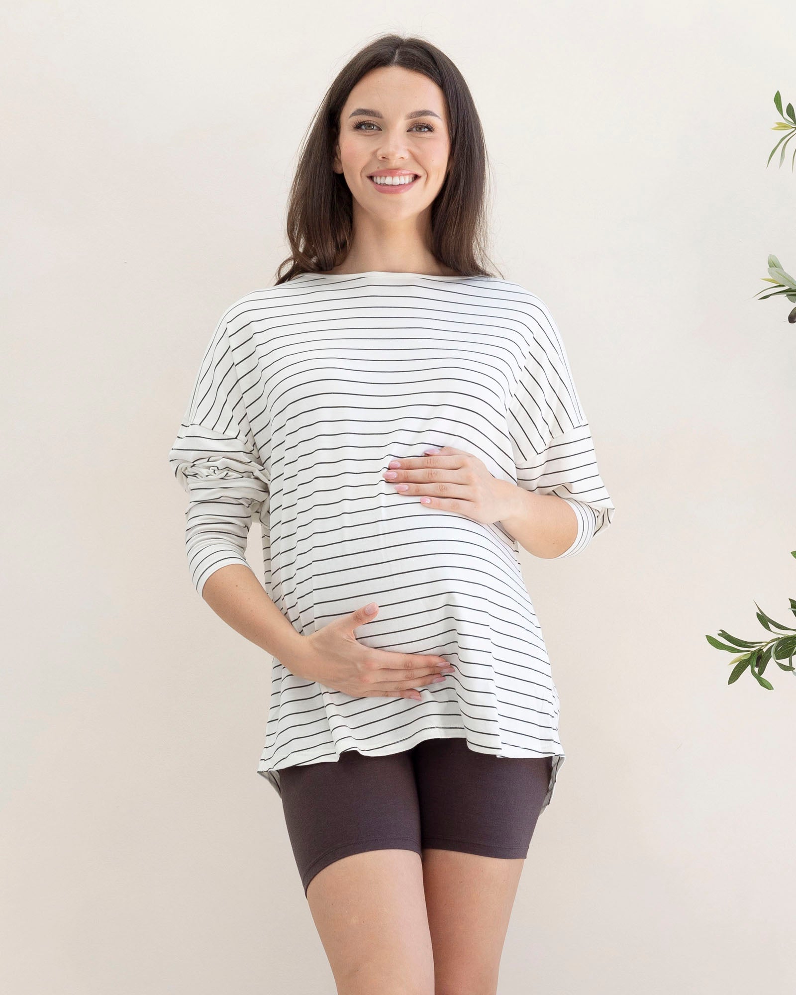 Reversible Maternity Long Sleeve-White/Olive Striped