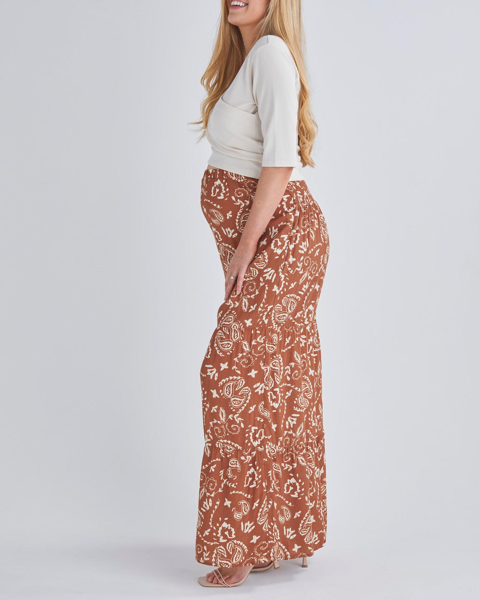 Stacie Wide Leg Maternity Ruffled Pants in Parsley Print