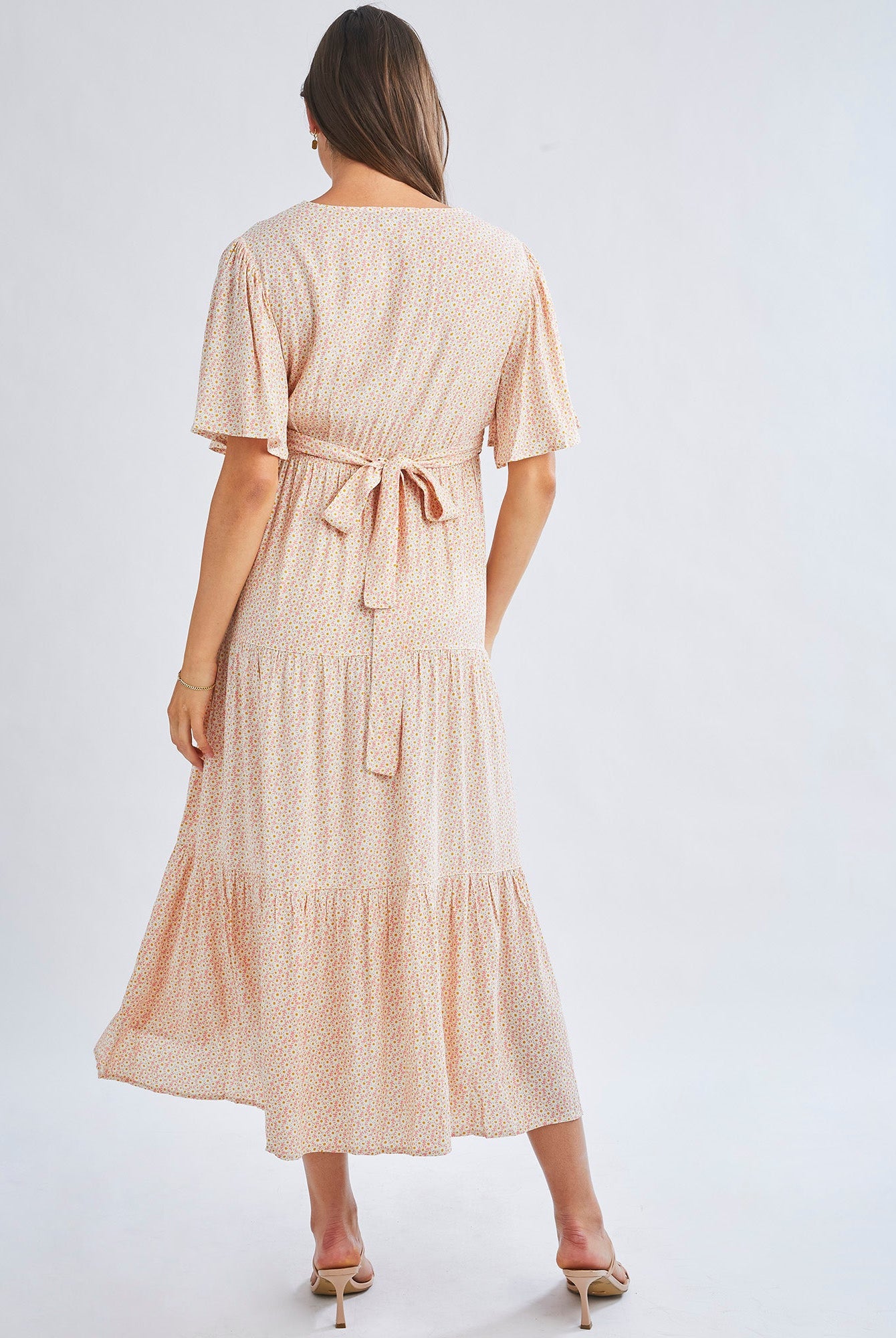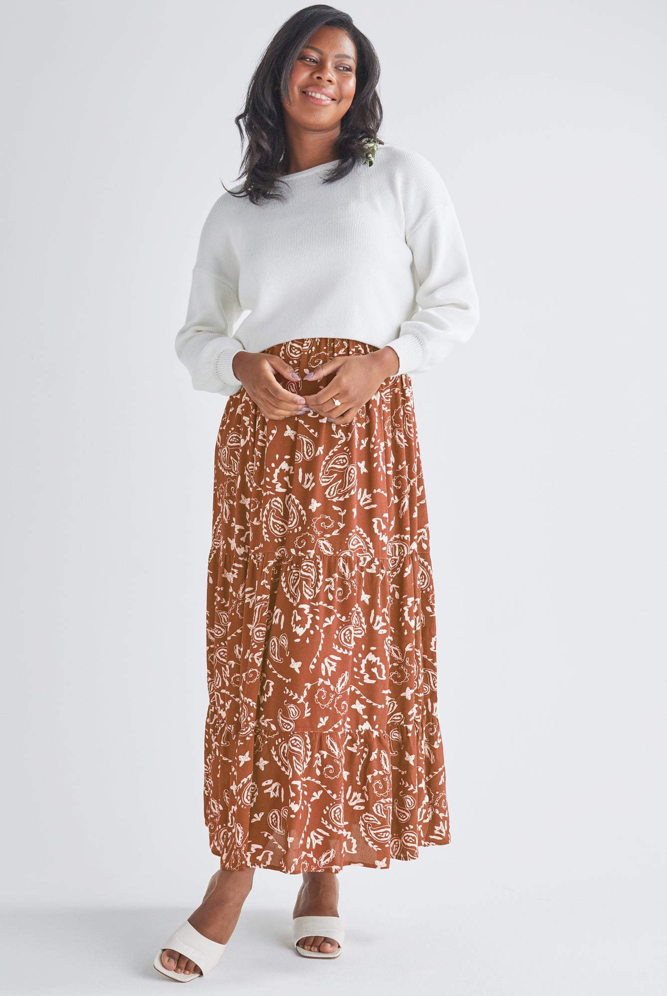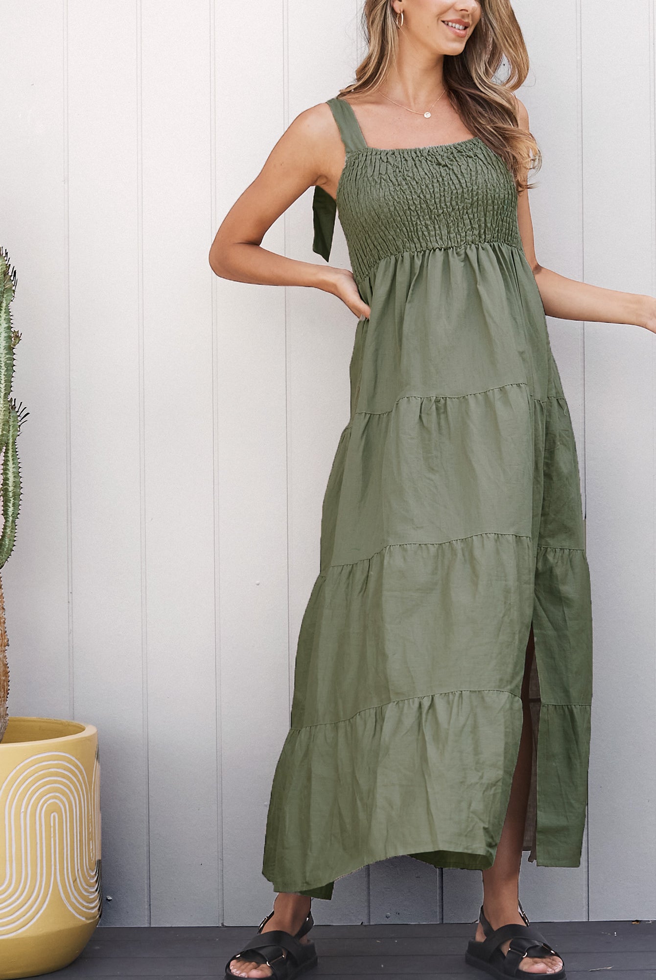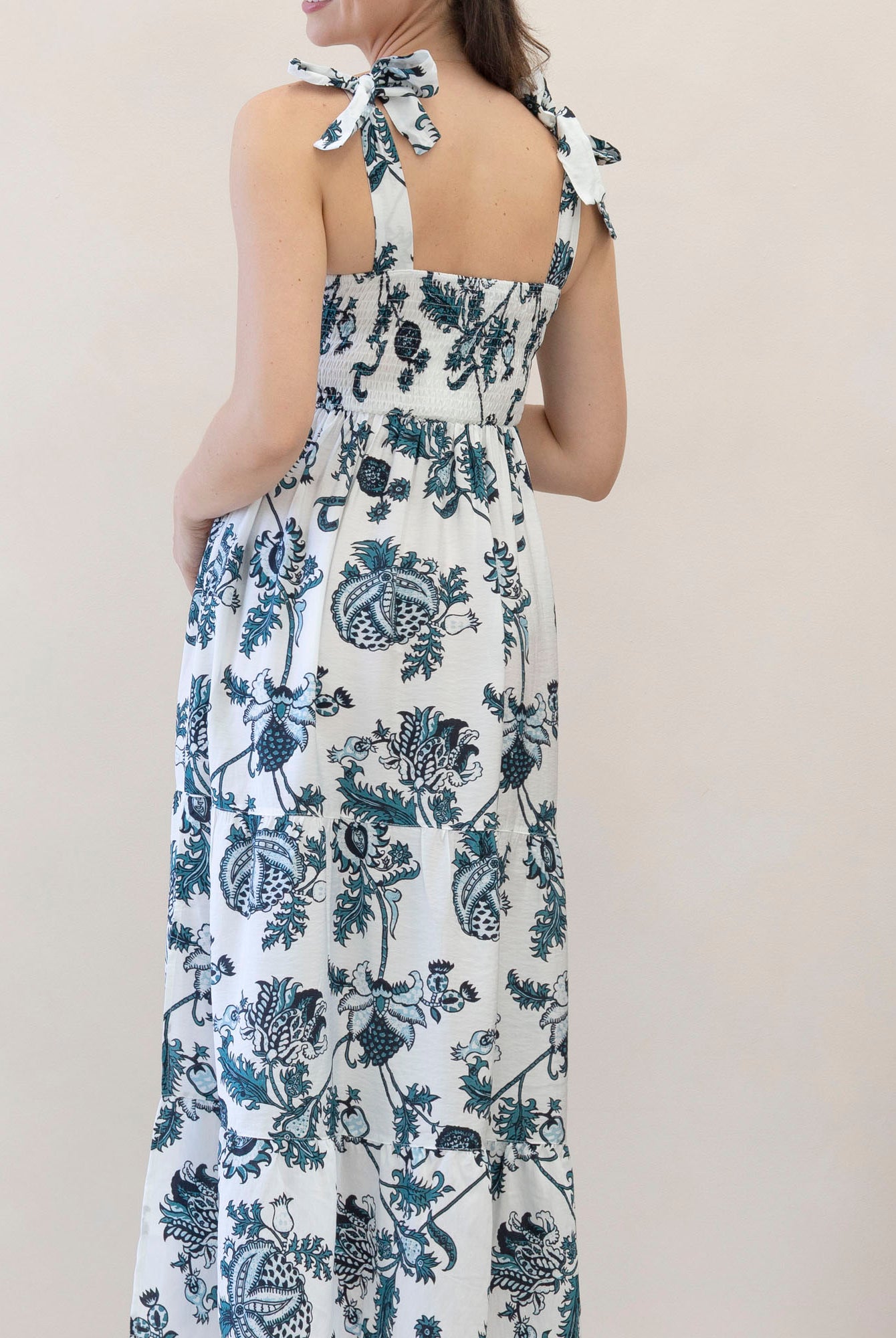 Wear a maternity maxi dress barefoot for a bohemian-inspired look.