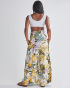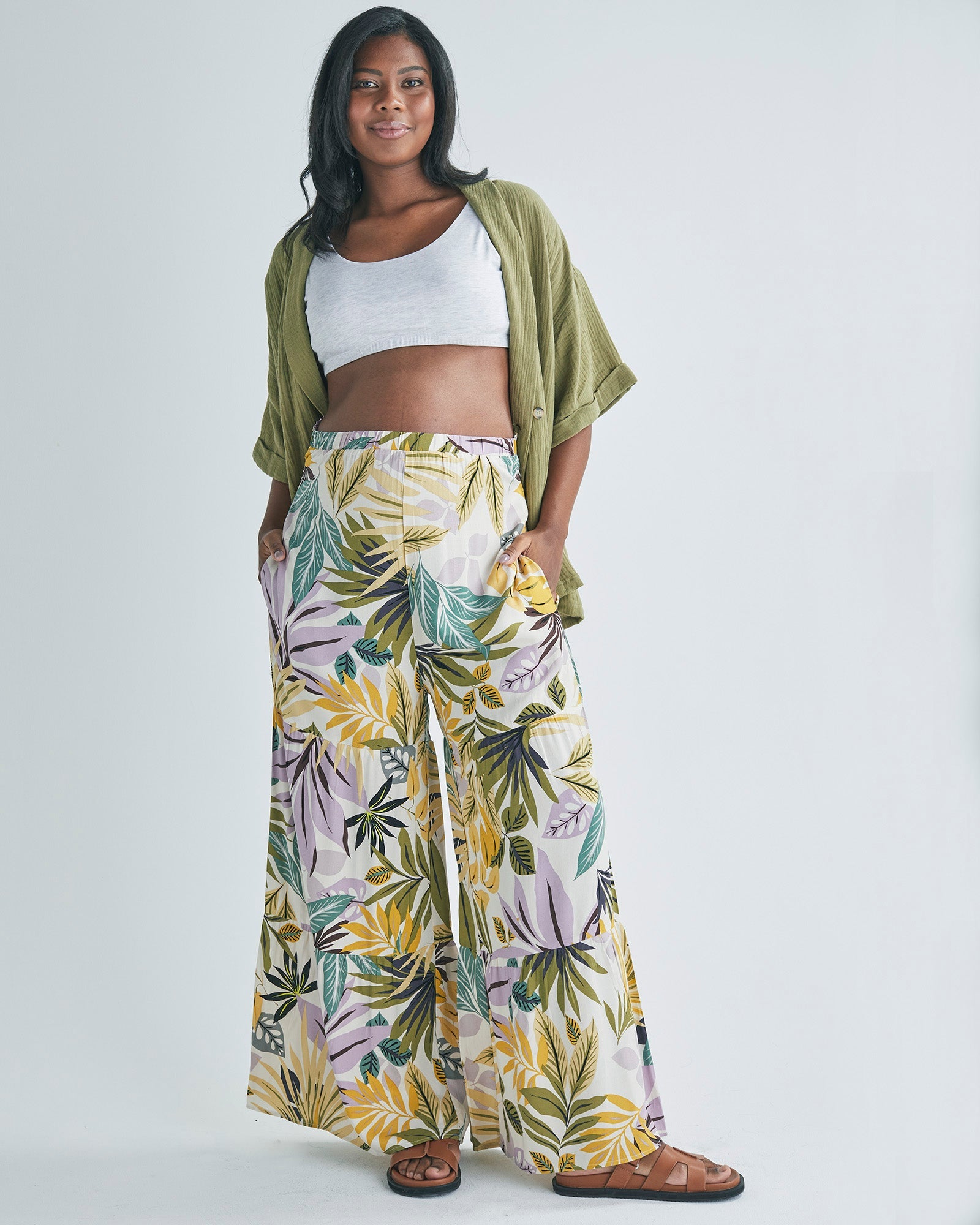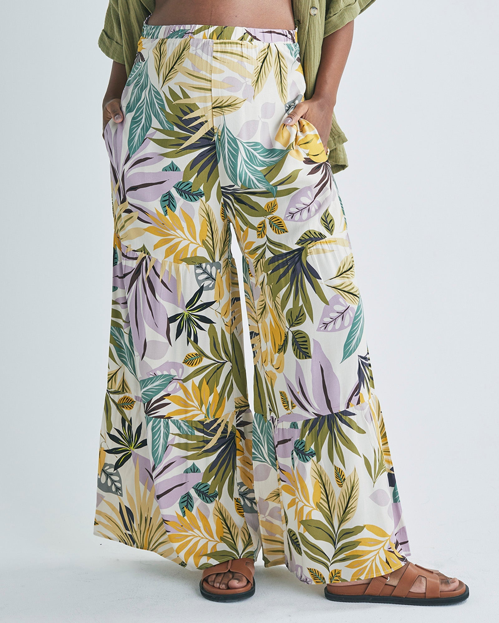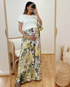 Stacie Wide Leg Maternity Ruffled Pants in Green Flora