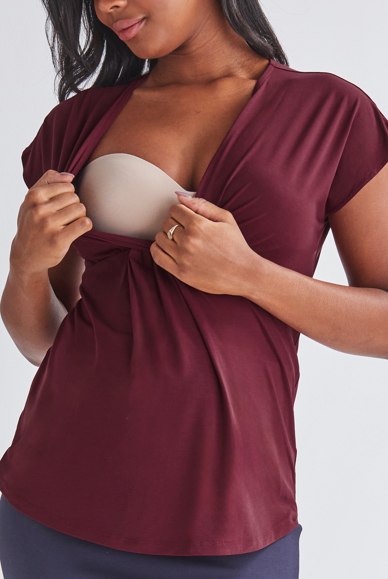 And because we know that pregnancy can be a time of change, our tops are designed to grow with you. They feature extra panels and stretchy fabrics that will accommodate your changing body.