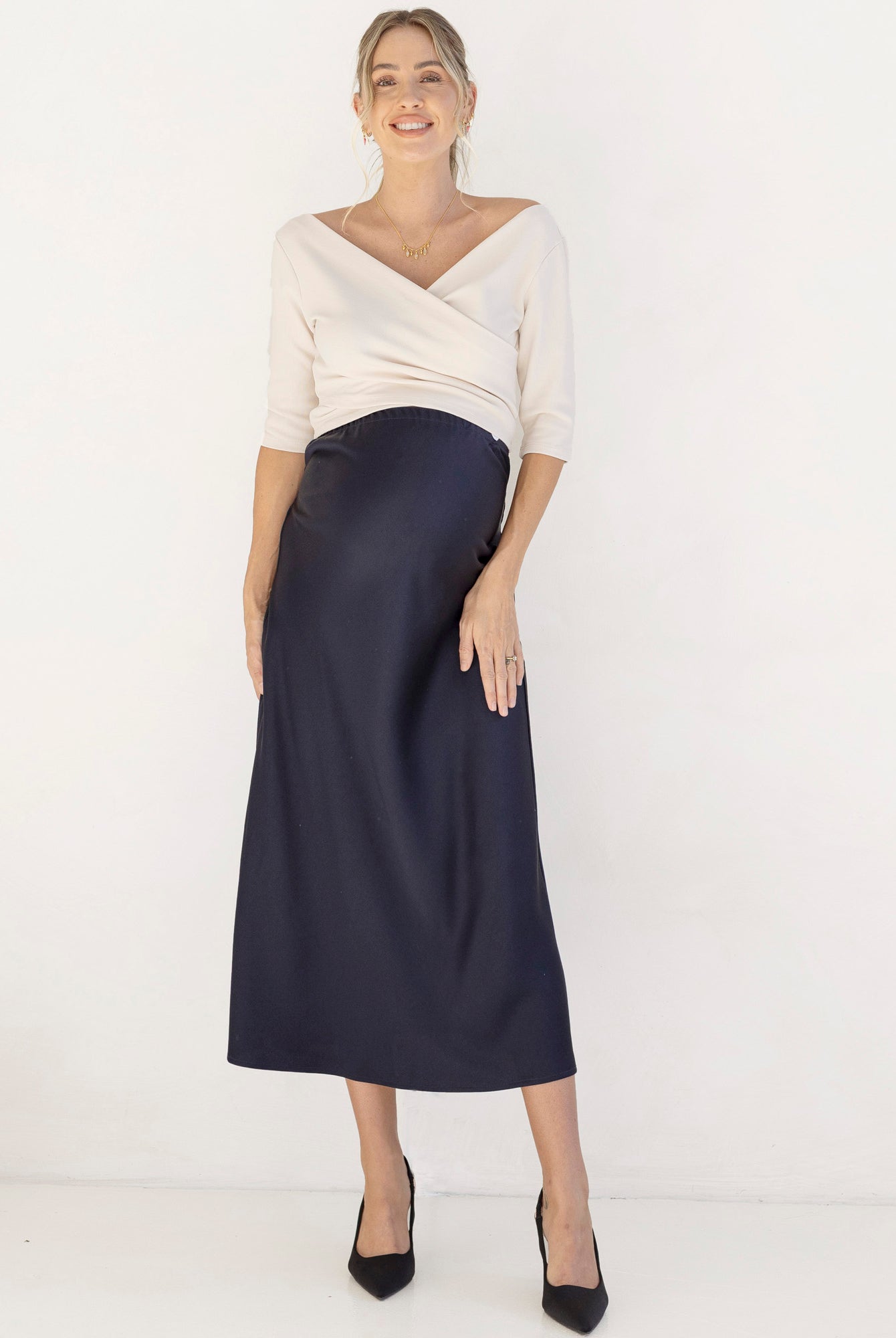 - Maternity work skirts: Tailored with stretchy panels for a snug yet comfortable fit, ideal for presentations and client meetings.