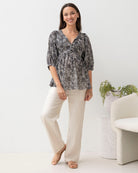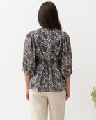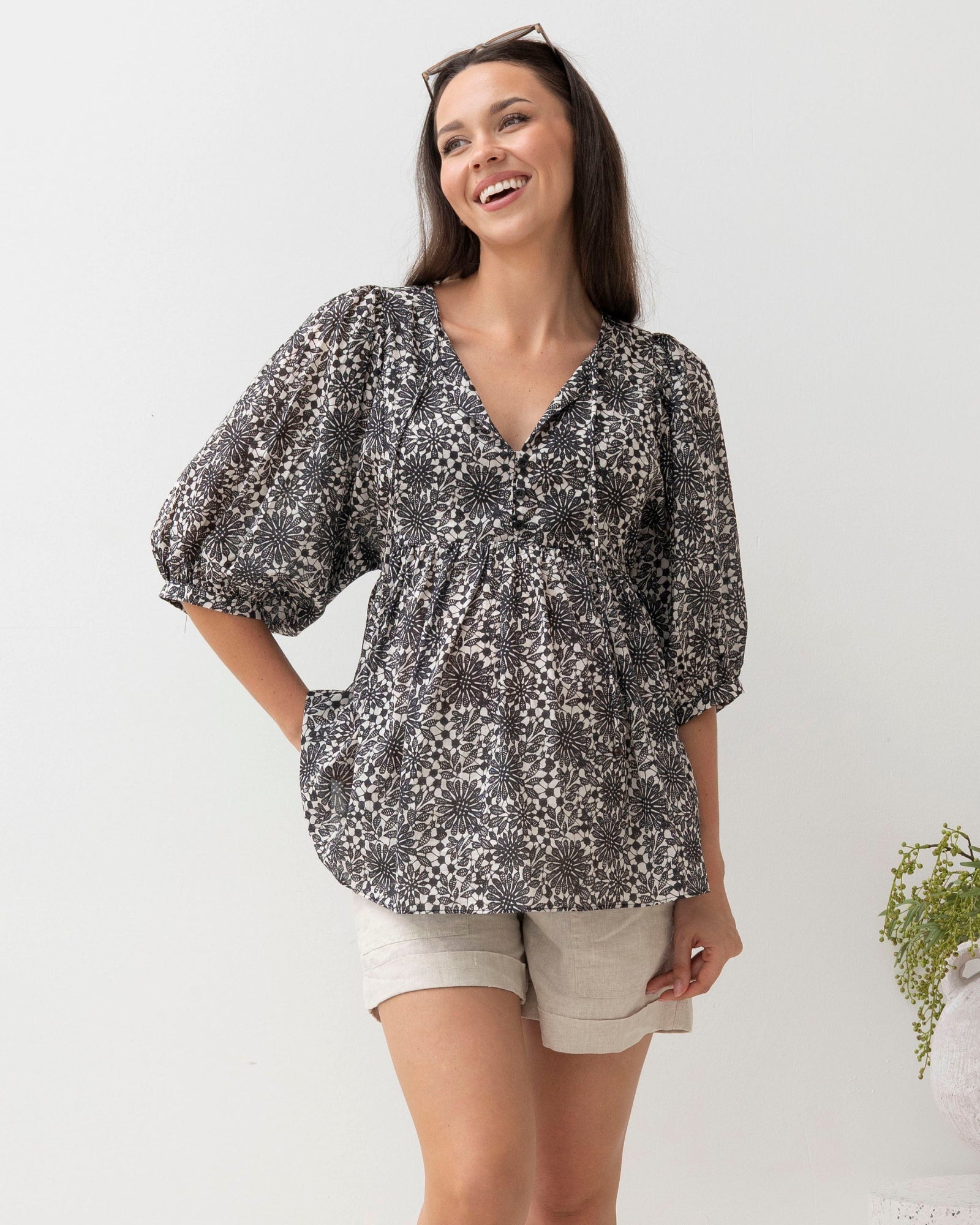 Black Daisy Print Cotton Tunic Top