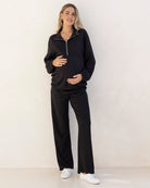 Made in soft and stretchy heavy weighted cotton blend fabric, it's perfect to take you through the seasons. This longline nursing jumper with a zip front for easy nursing access offers a subtle ribbing at the neckline, cuffs and hem. You can also match it up with the high stretchy waistband pants for your growing baby bump.