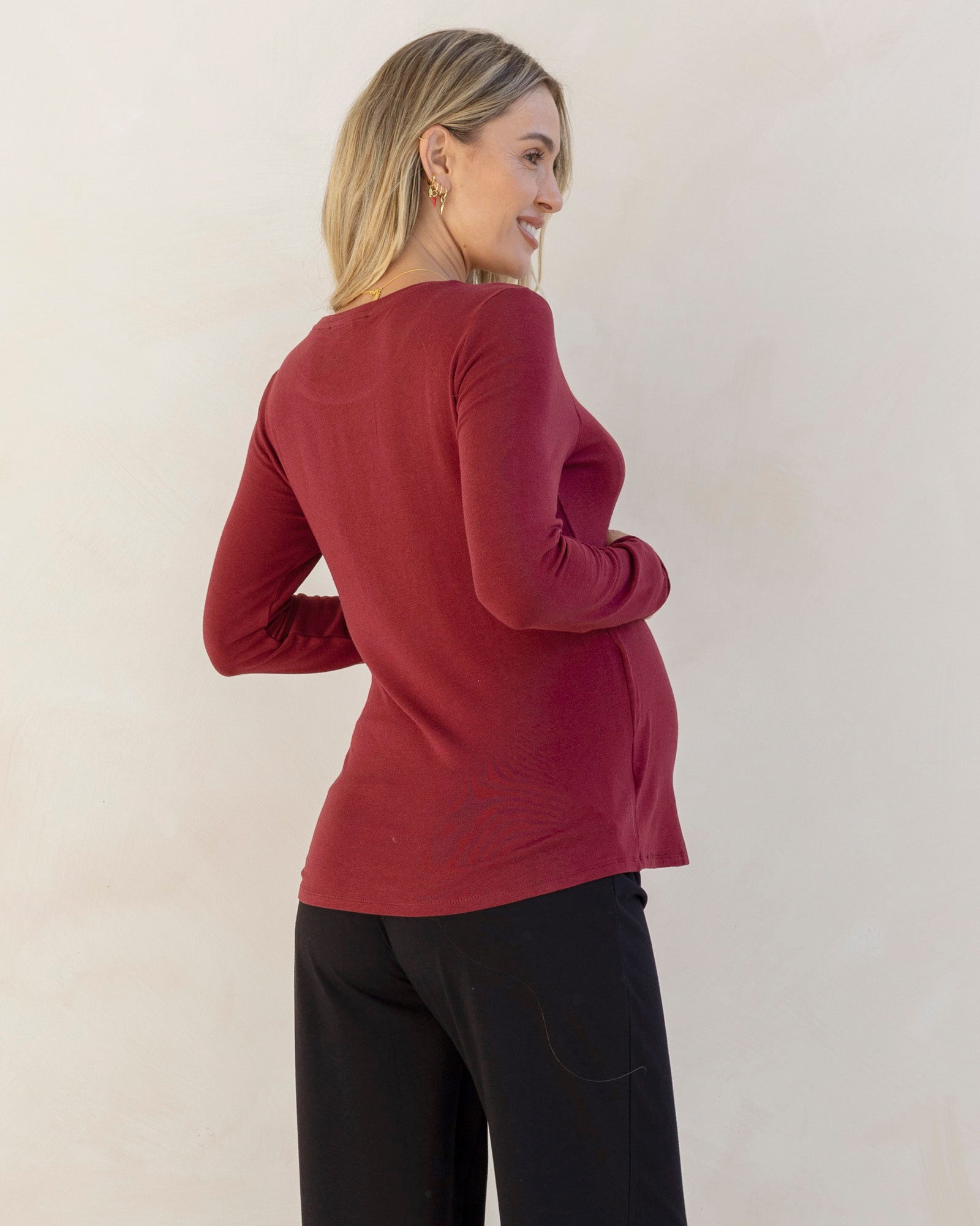 Annie Maternity/ Nursing Soft Nursing Top In Burgundy