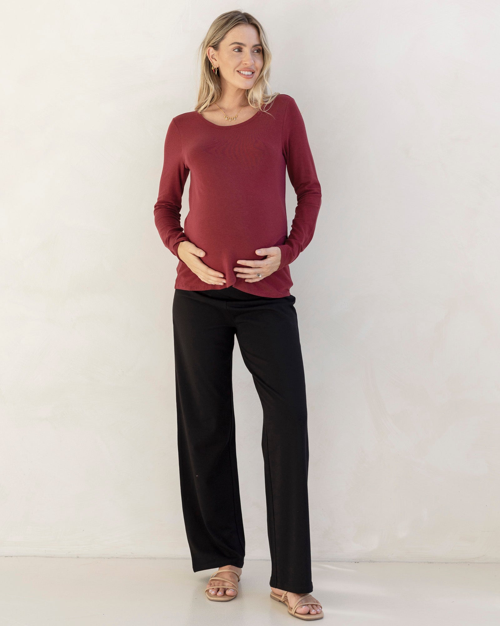 This essential long sleeve maternity soft top looks just as great throughout pregnancy as it does post-babe. The clever top layer also hides some seriously discreet nursing access! All you must do is lift the top layer to find dropped armholes in the under-layer, allowing you to feed anytime, anywhere.