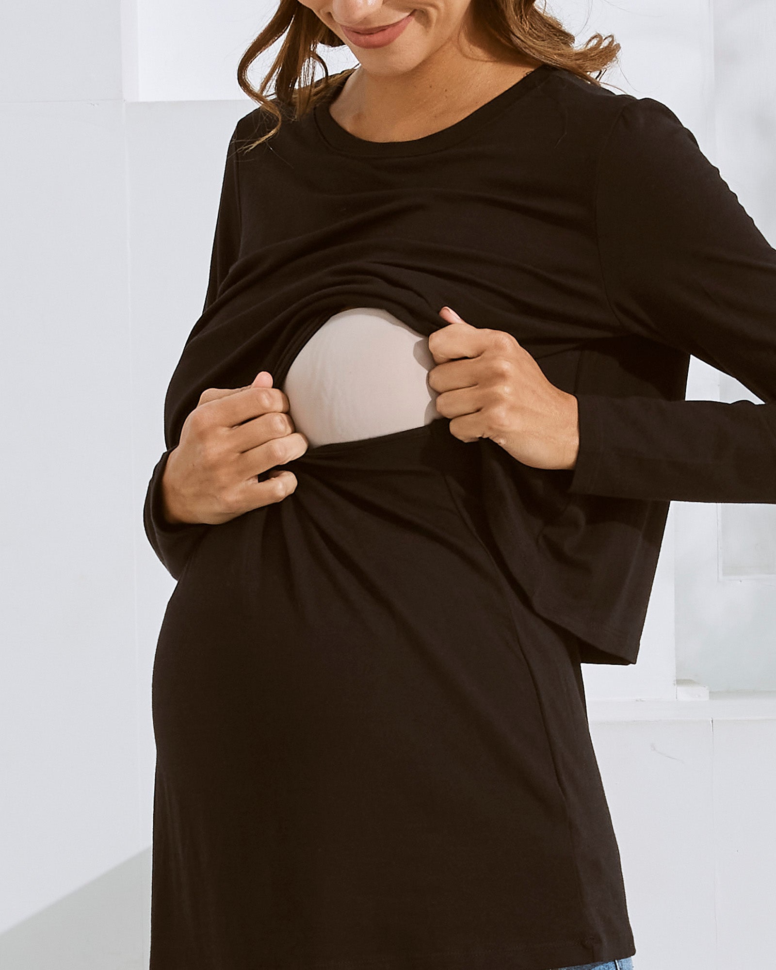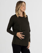 Bamboo Long Sleeve Maternity and Nursing Top in Black