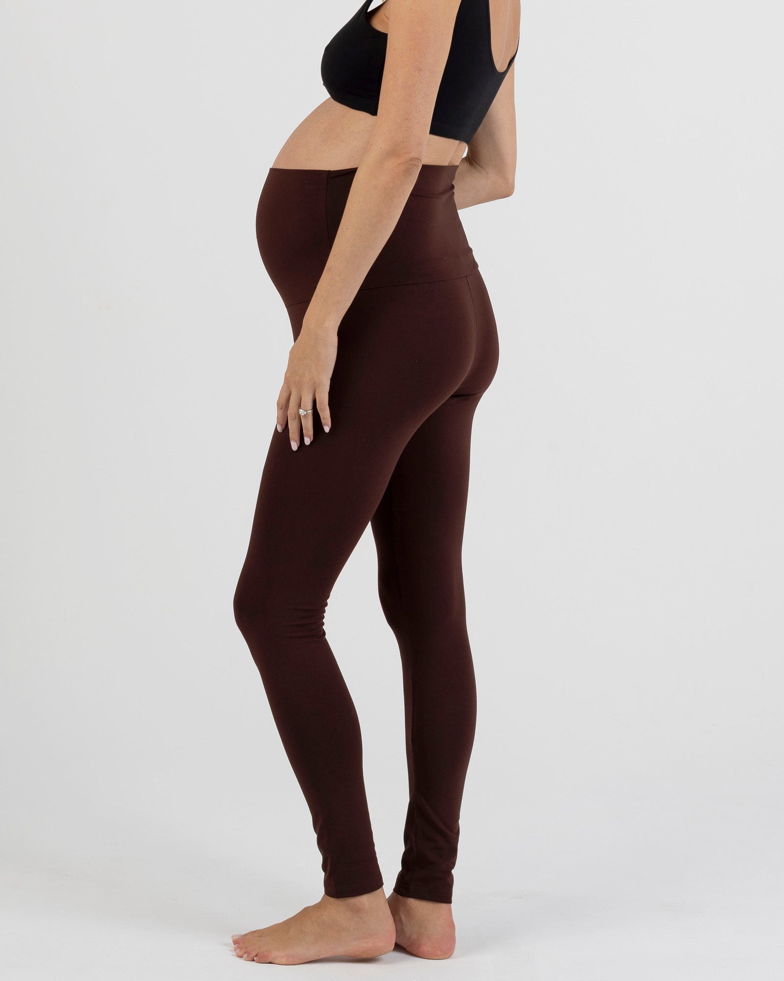 Basic Cotton Maternity Leggings In Chocolate Brown