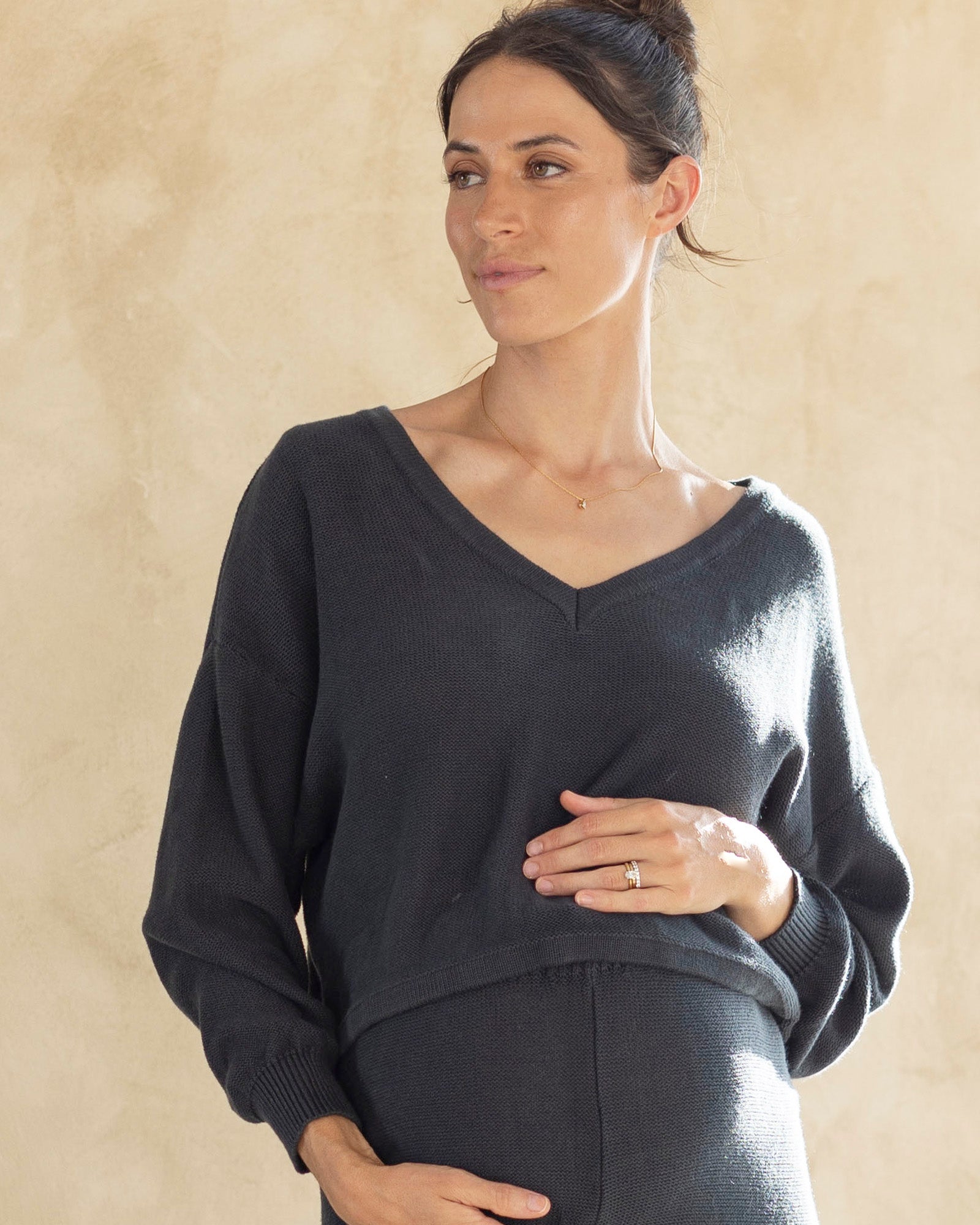 This summer cotton cozy maternity  cotton knit jumper is designed to offer endless styling options while keeping you comfortable throughout pregnancy and beyond. It is also great to go with the exactly matching colour pants for your lounge needs.