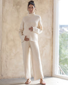 Chloe Maternity Turtle Neck Knit Sweater with Oversized Sleeves in Cream