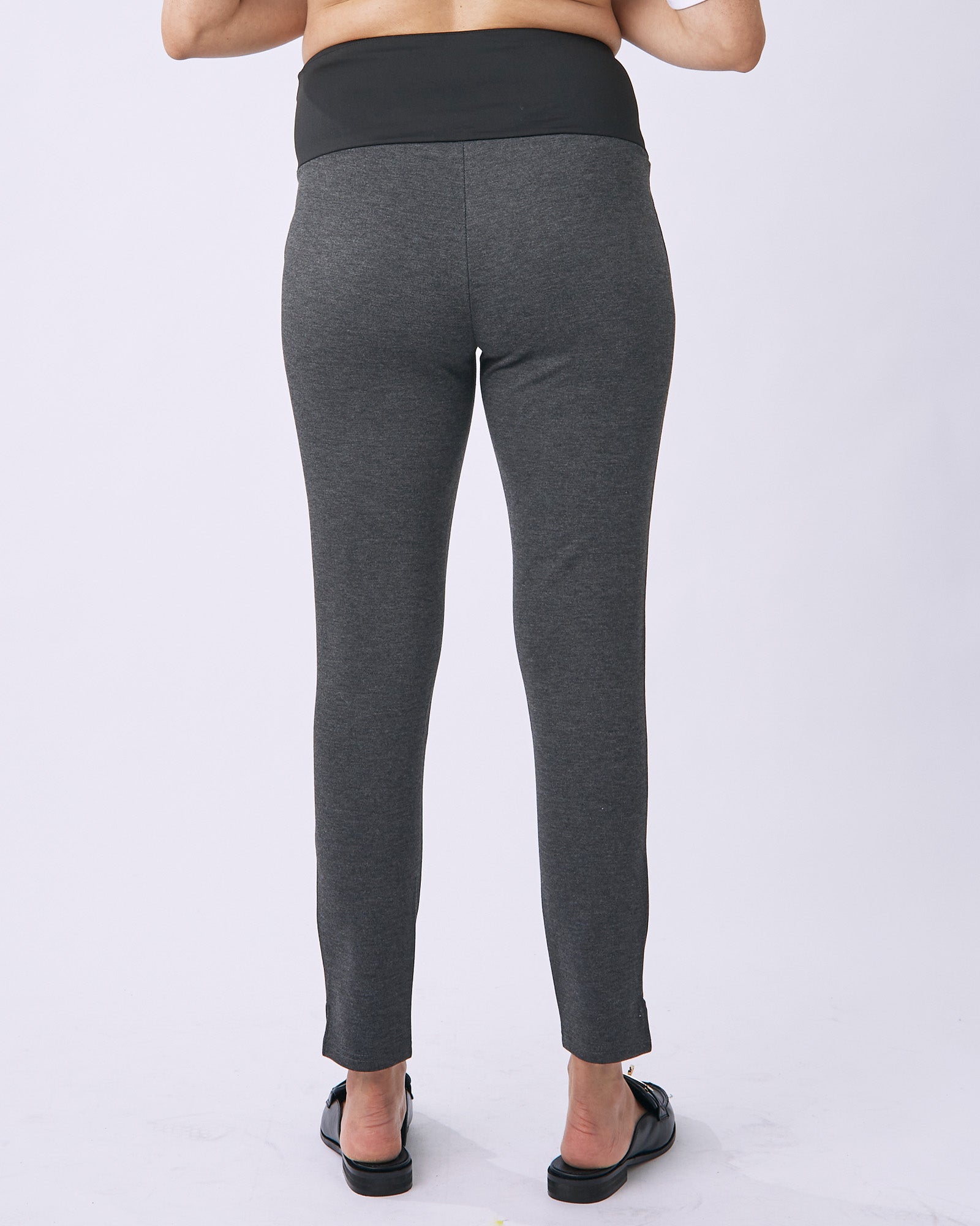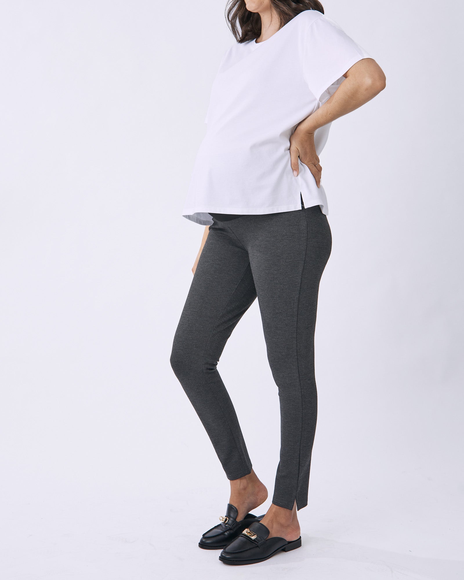 This slim cut maternity  legging with a high waist band and thick ponte fabric and super flattering leg shape will be ideal during your whole pregnancy and perfect after the birth.