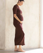 Zélie Wide Rib Maternity Midi Skirt in Chocolate