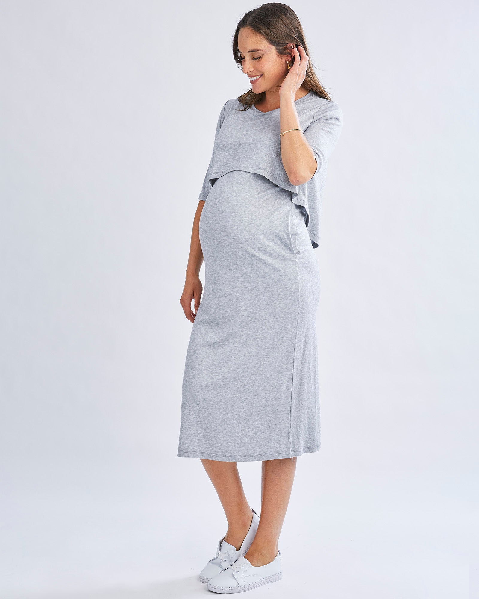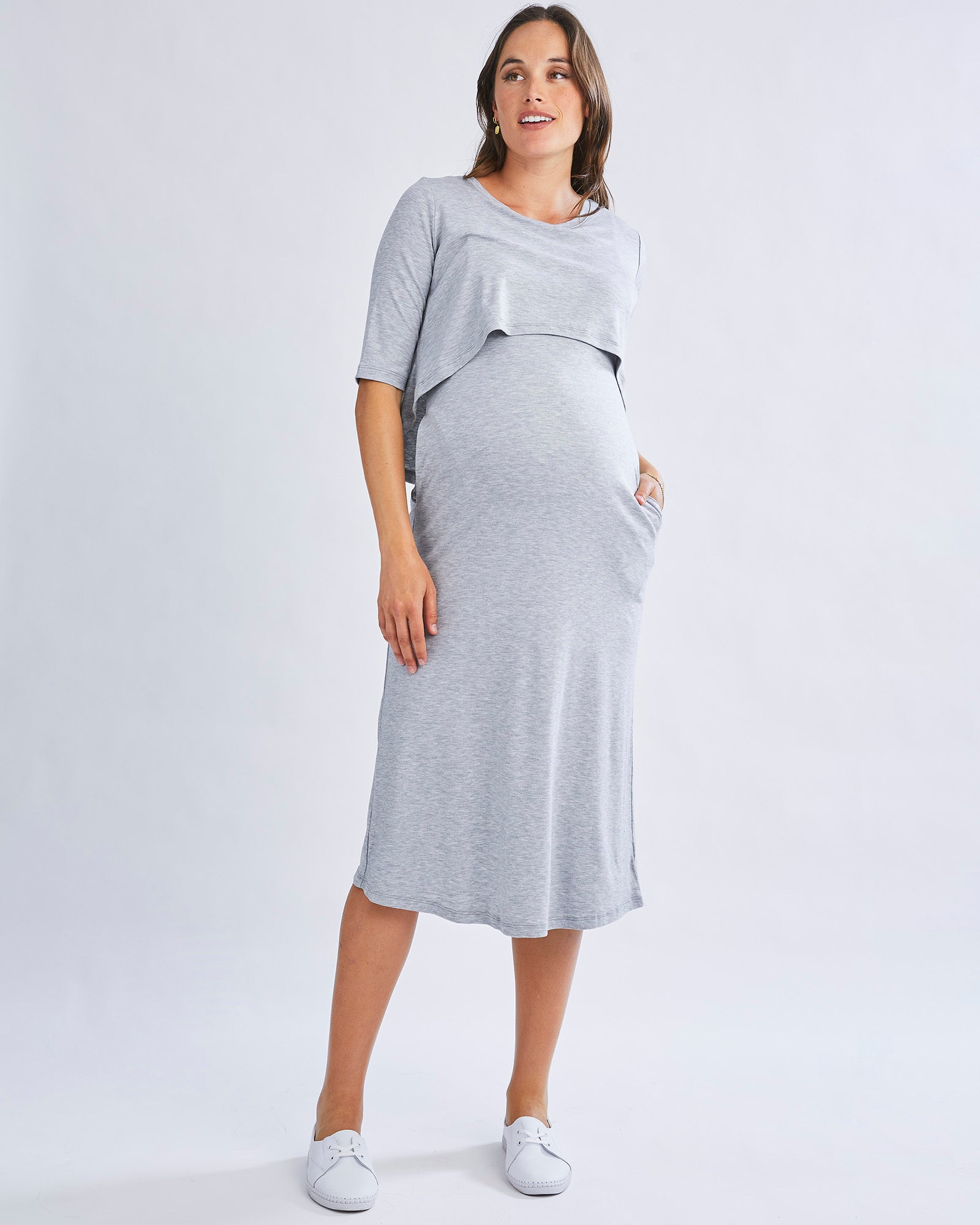 Embrace Elegance: The Ultimate Maternity & Nursing Dress in Grey