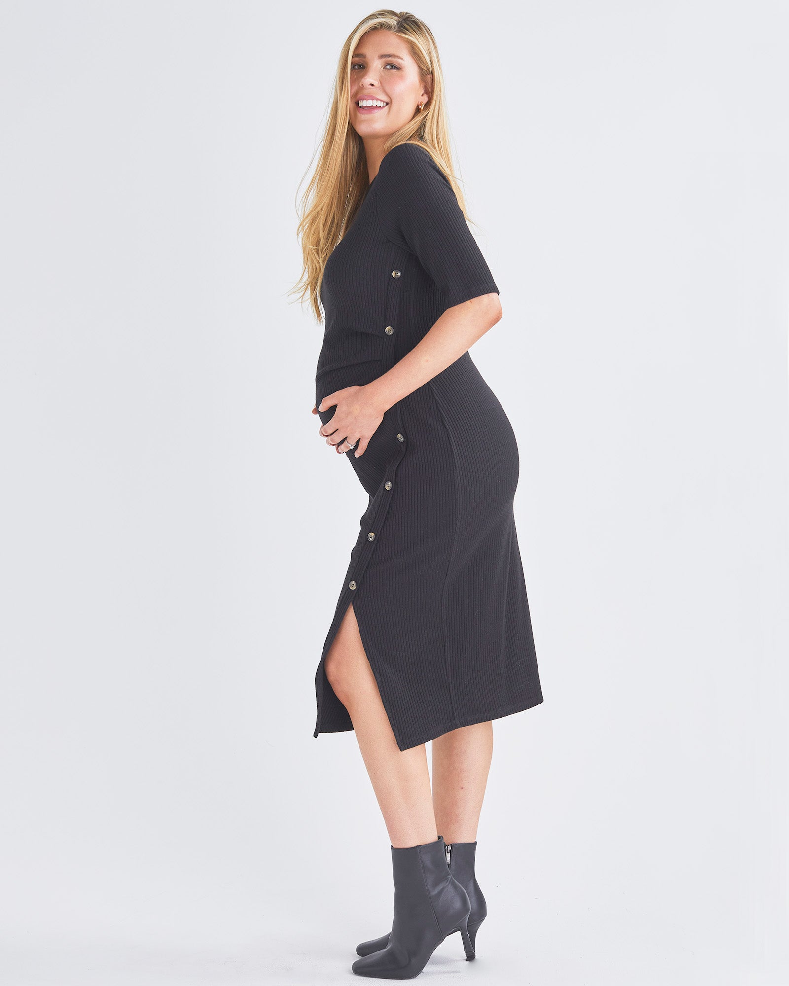 Juliet Maternity Bodycon Dress with Side Button Detail in Black