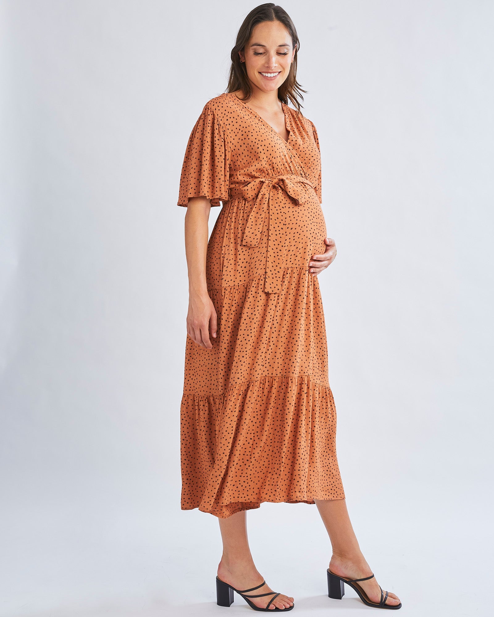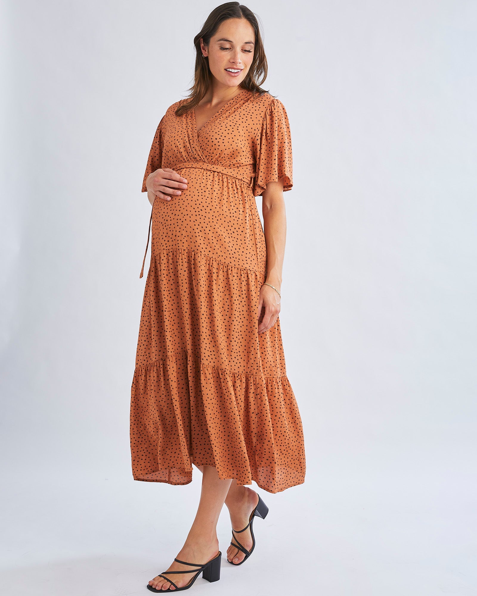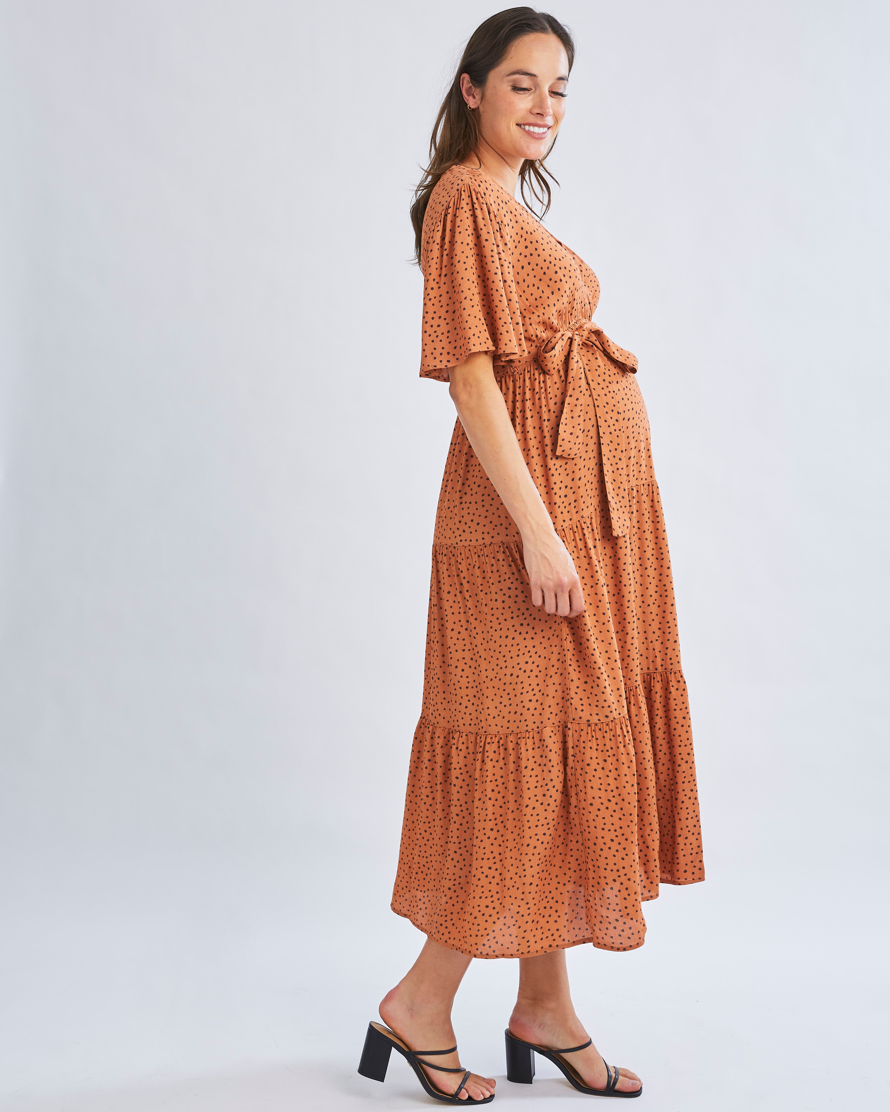 Our Cara Maternity Maxi Dress with a waist tie that can be tied at the front or back this is a dress that will suit all occasions.