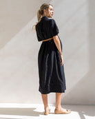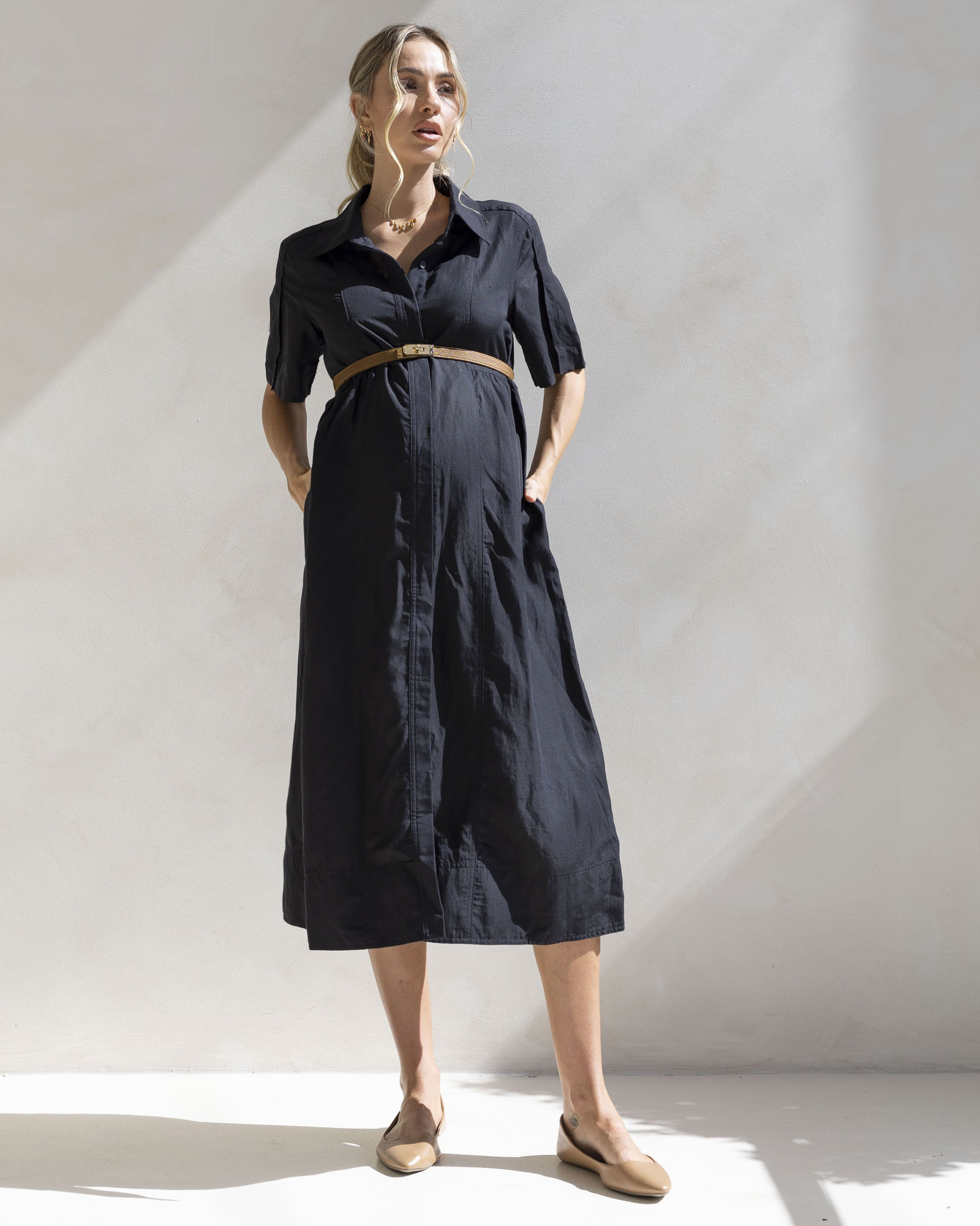 Elevate your workwear wardrobe with the Sophia Maternity Work Dress, designed to combine effortless style with practicality. Crafted from a premium blend of Tencel and linen, this dress ensures all-day comfort, making it perfect for working moms.