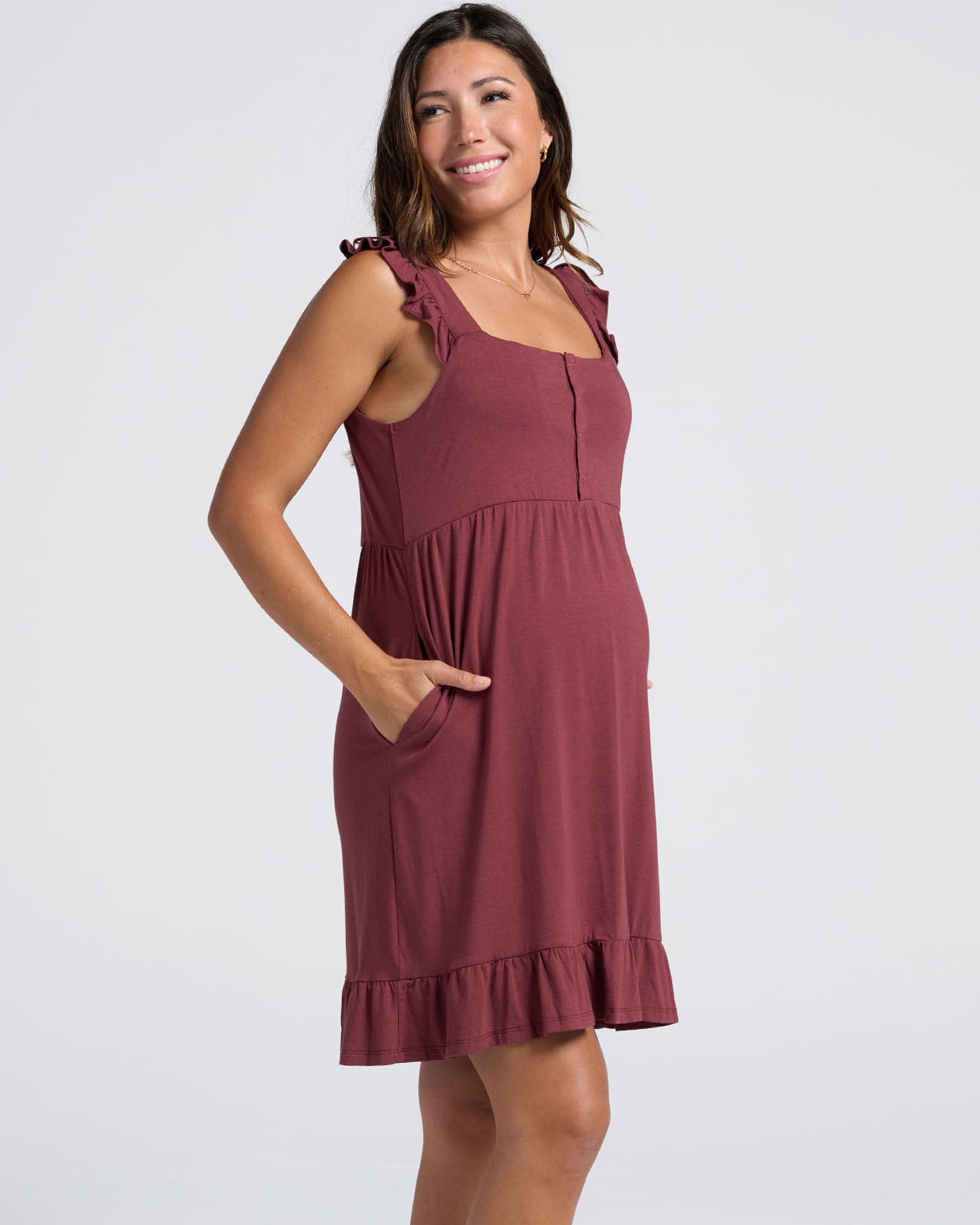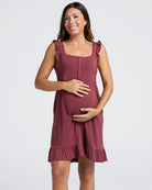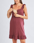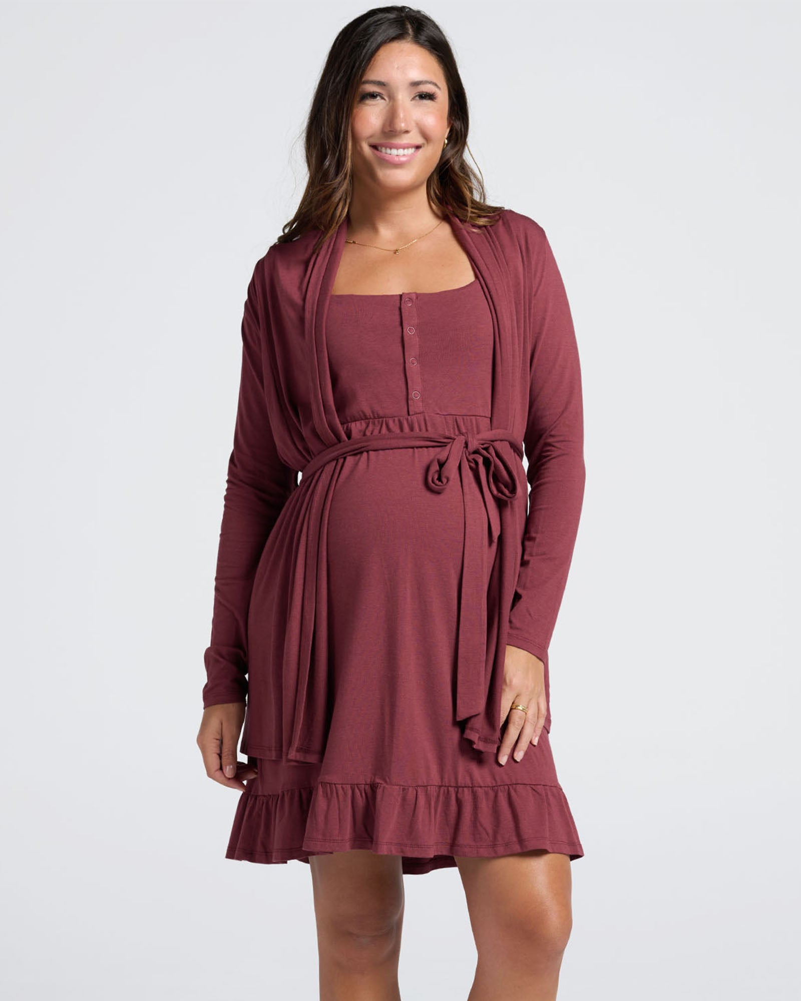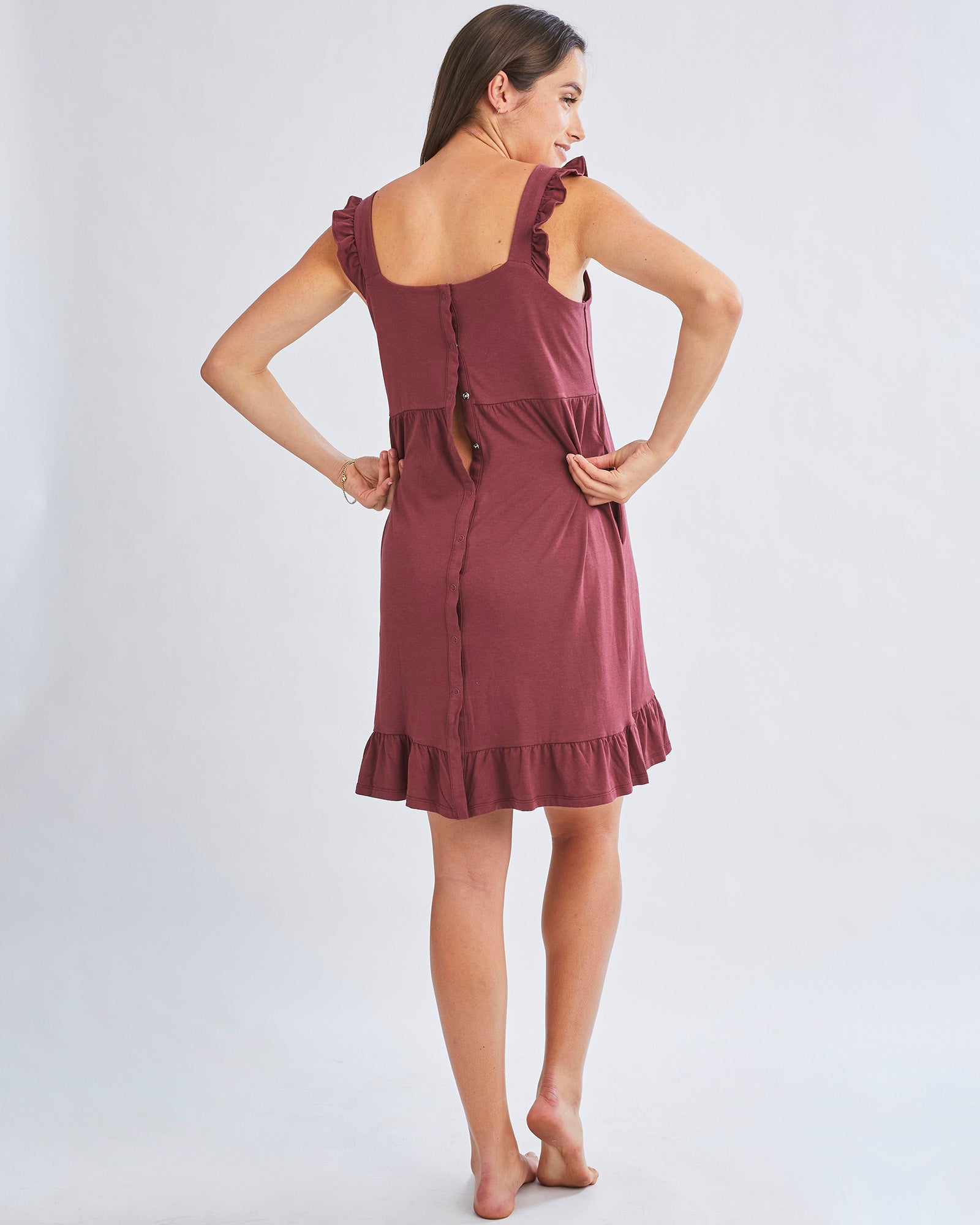 Grace Hospital Birthing Gown/Night Dress with Nursing Access - Burgundy Red