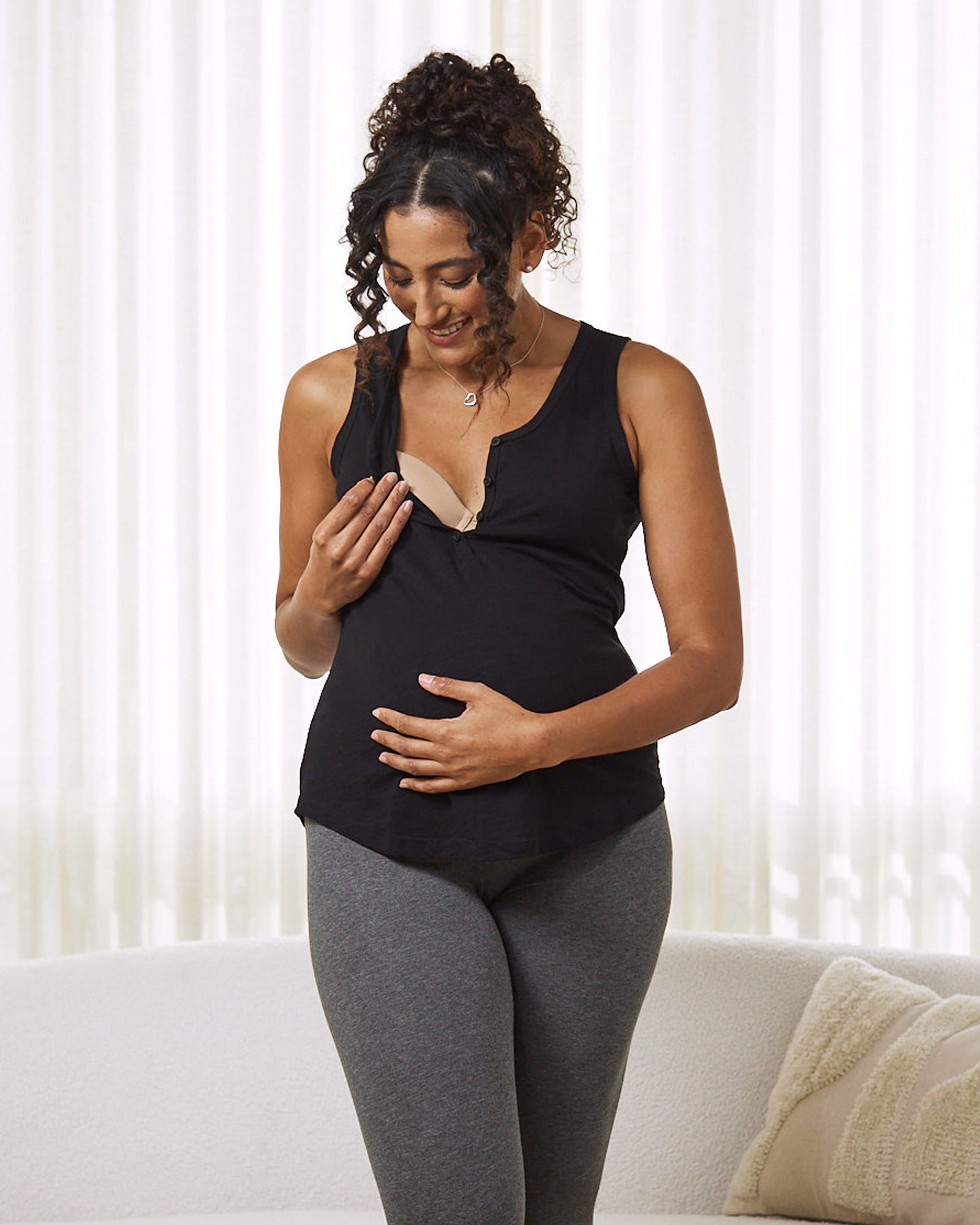 This comfortable and stylish maternity singlet is made from soft cotton, making it soft and breathable for all-day wear. The singlet features a V-neck and it is stretchy enough to accommodate your growing belly. It is also perfect for nursing, as the front buttons can be easily open to access your breast.
