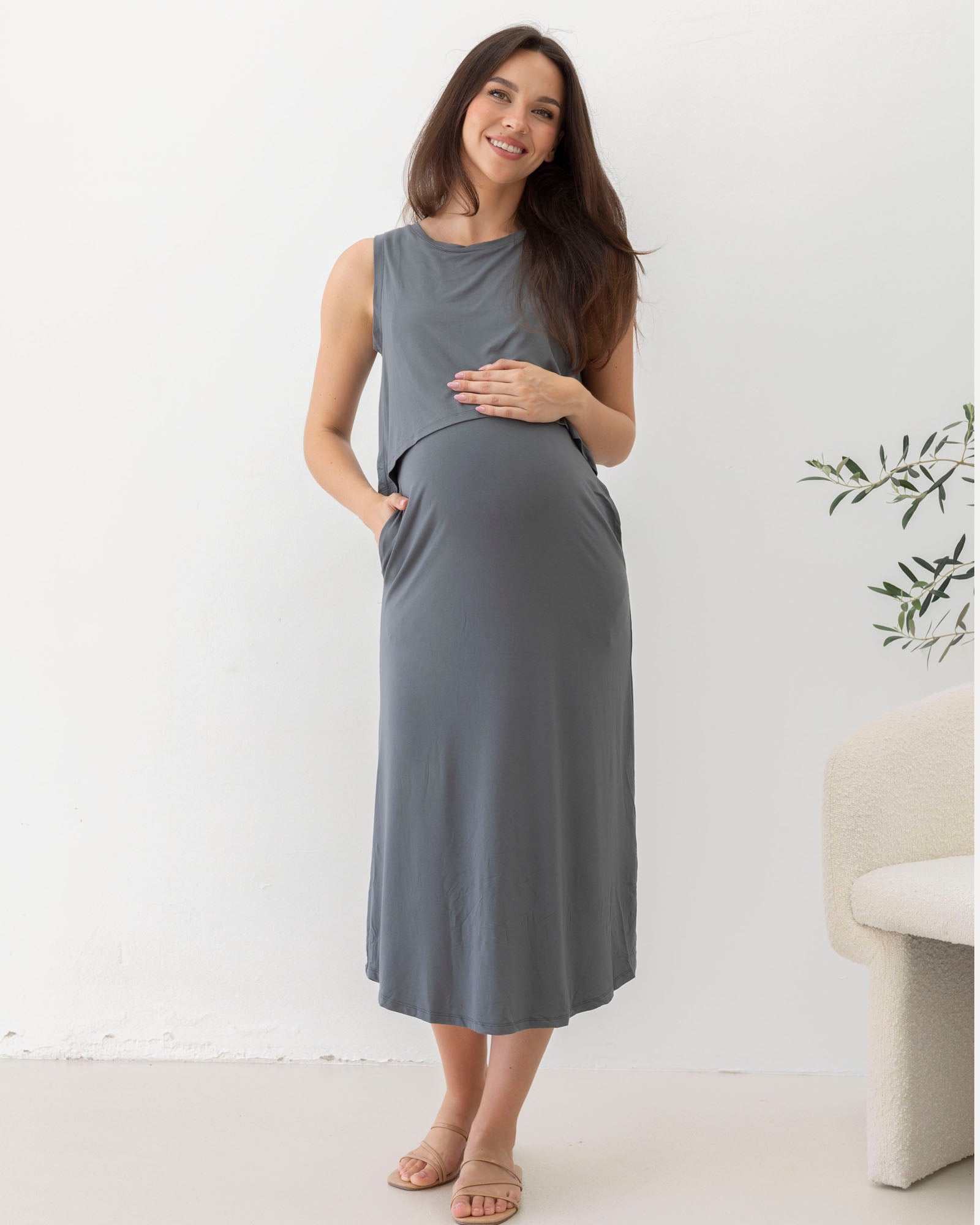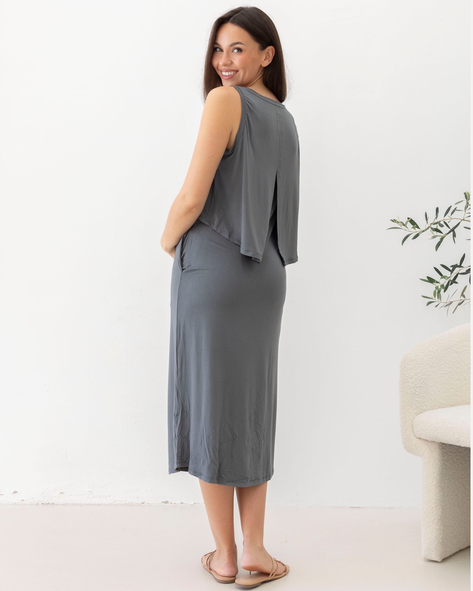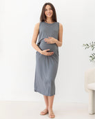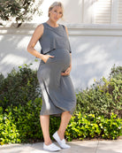 Manon Maternity & Breastfeeding Midi Dress in Slate Grey