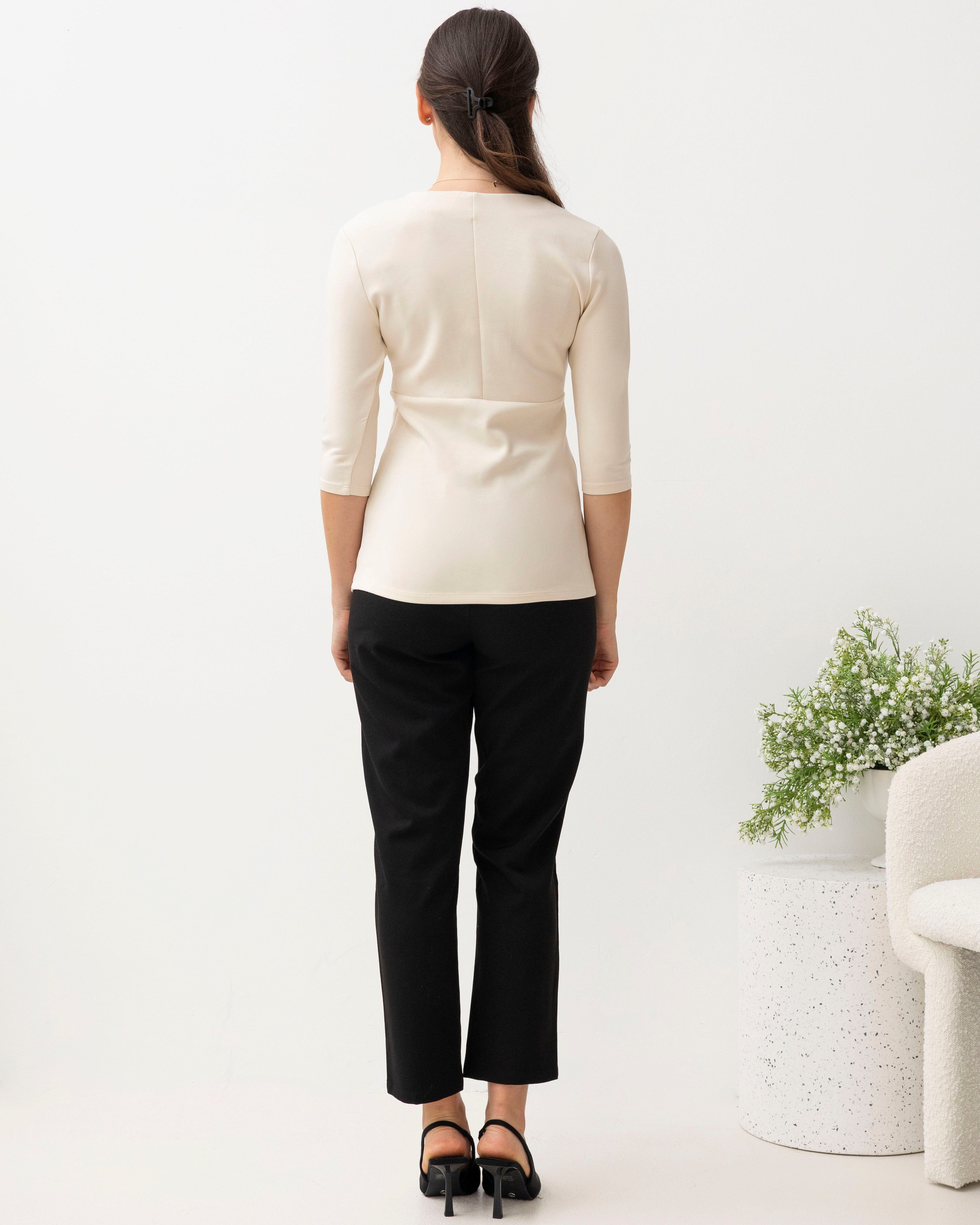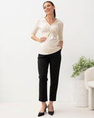 Elevate your workwear wardrobe with this effortlessly chic Maternity V-Neck Work Top, crafted from a soft, stretchy ponte/modal silky fabric that blends comfort with a polished look. Designed to pair seamlessly with any maternity pants or skirts, this top is a versatile essential for the modern mum-to-be.