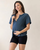 Zara Ribbed Short Sleeve Maternity Top In Slate Blue