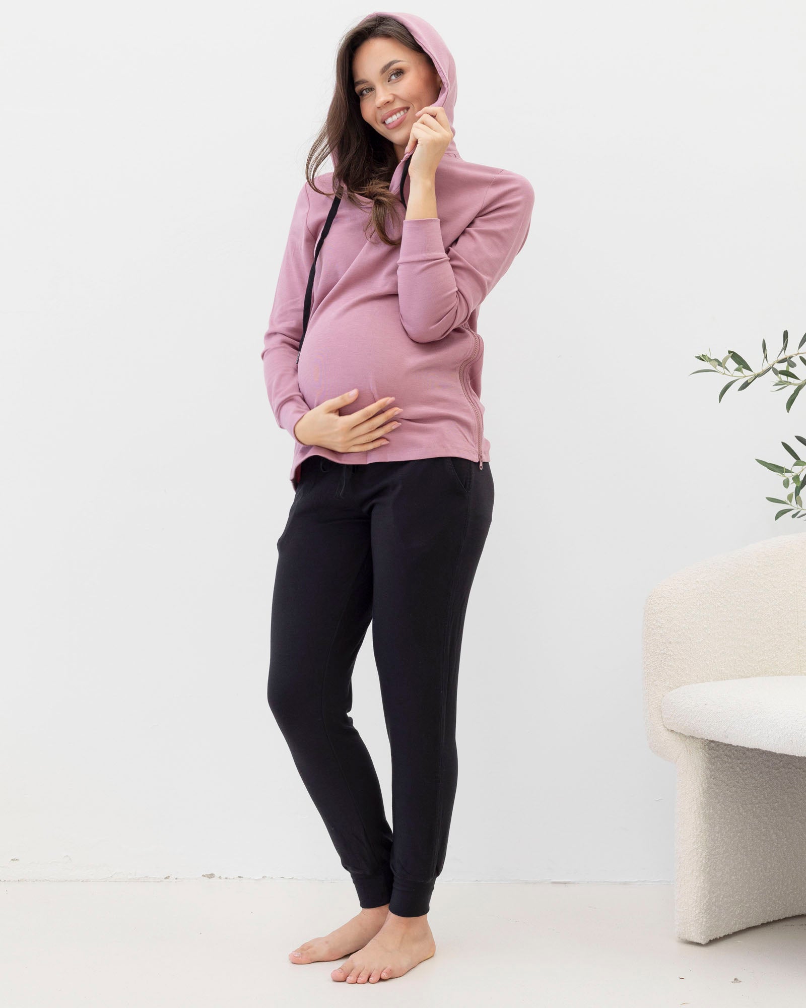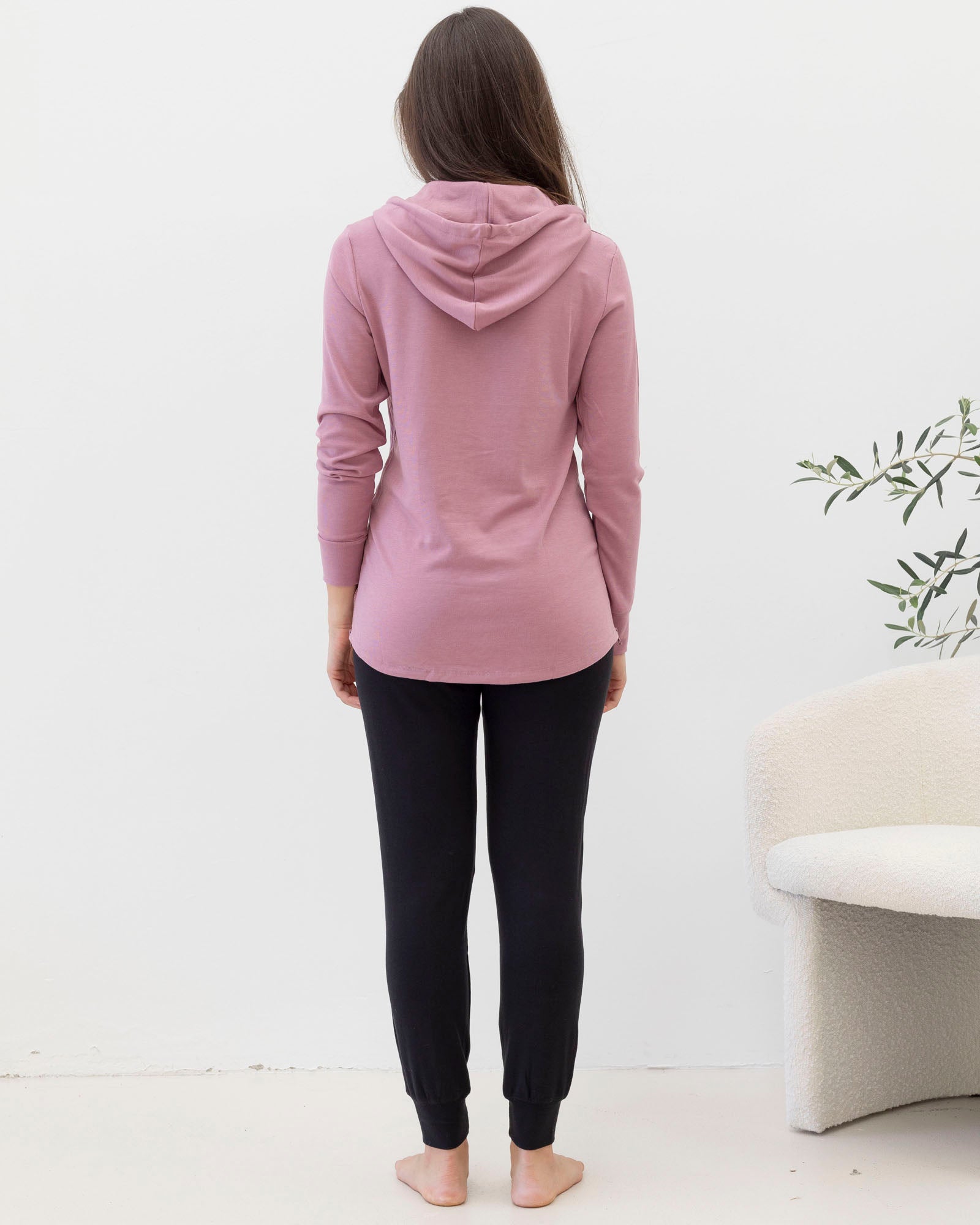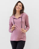 Our 2 piece maternity and nursing Side Zipper Winter Rib Hoodie Top is super cozy and comfy. It comes with a super soft pink hoodie with zippers either side giving easy access when nursing.