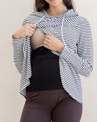 Maternity Petal Hem Hoodie Nursing Top in Stripes