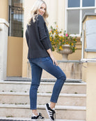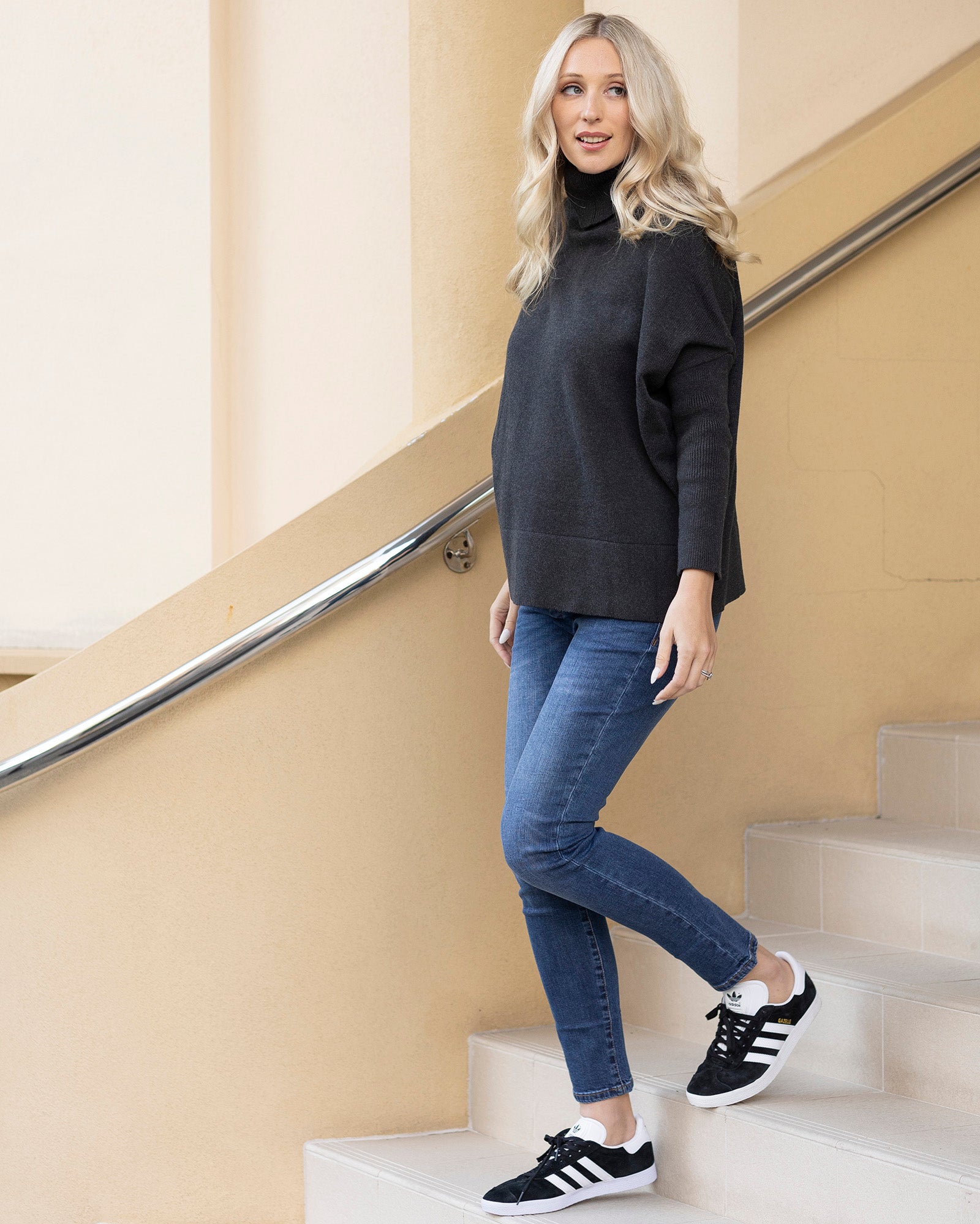 Super cozy, it's designed to sit comfortably over your bump and post-baby belly on colder days.