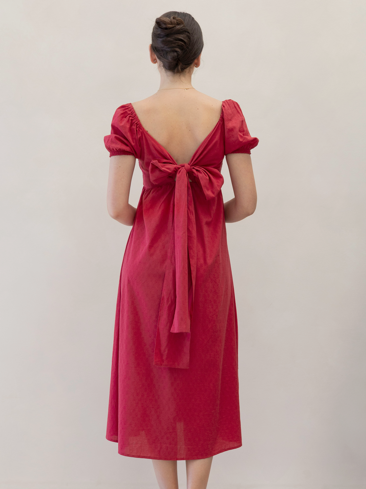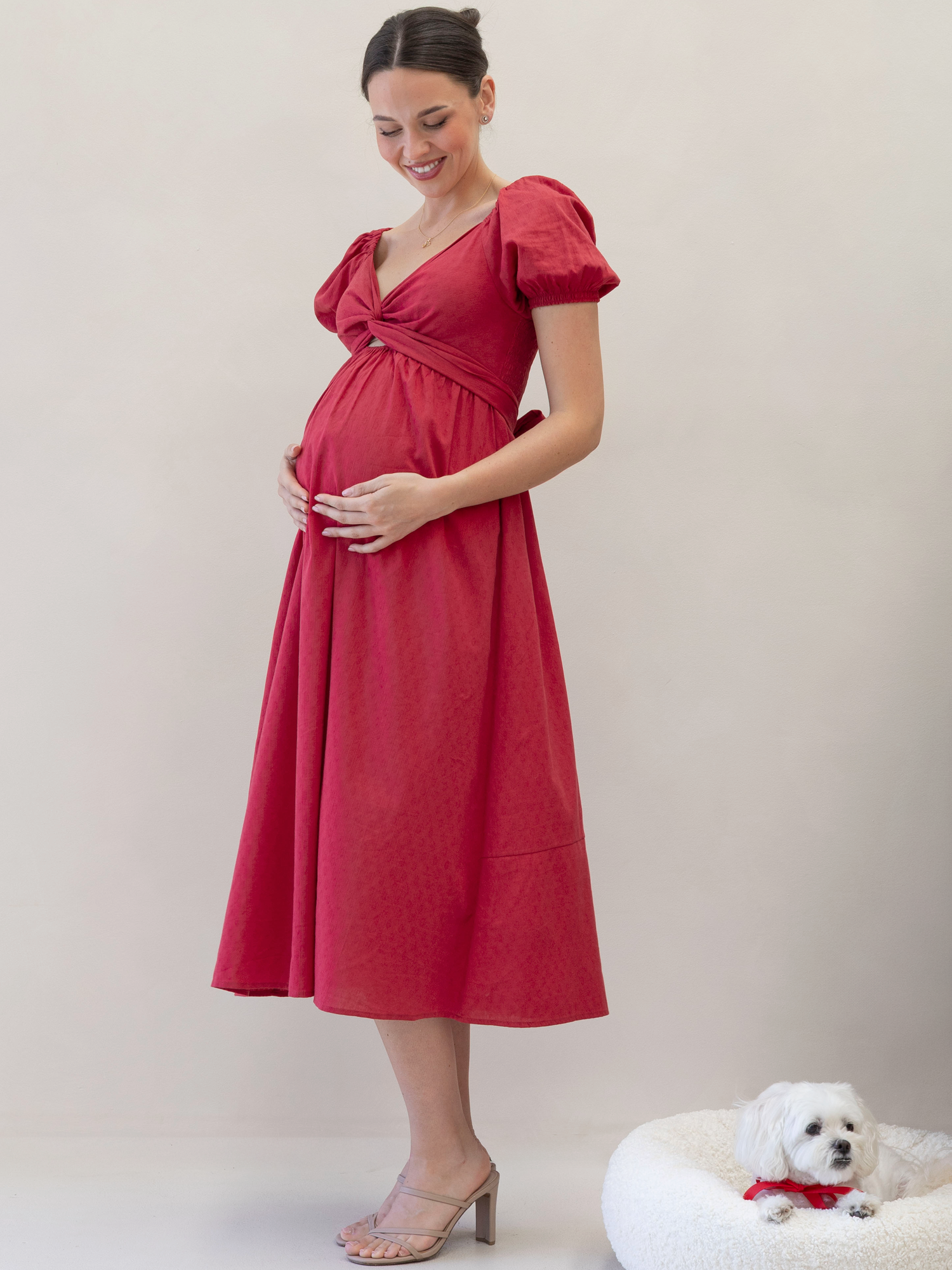 Fabia Reversible Tie Maternity Cotton Dress In Noel Red