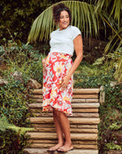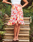 Christie Maternity Wrap Midi Skirt in Red Floral Print