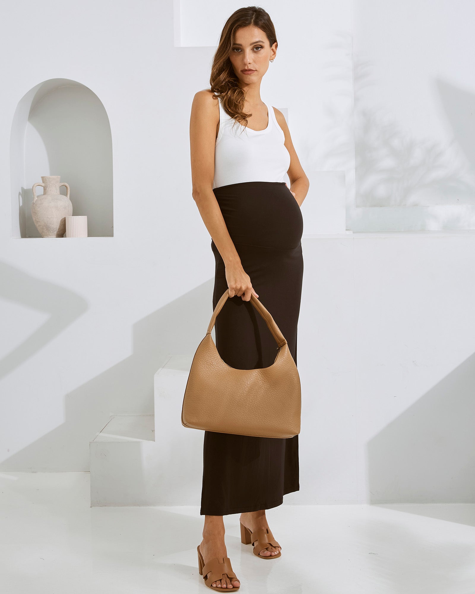 This versatile black maternity maxi skirt is a must-have for all body shapes.
