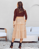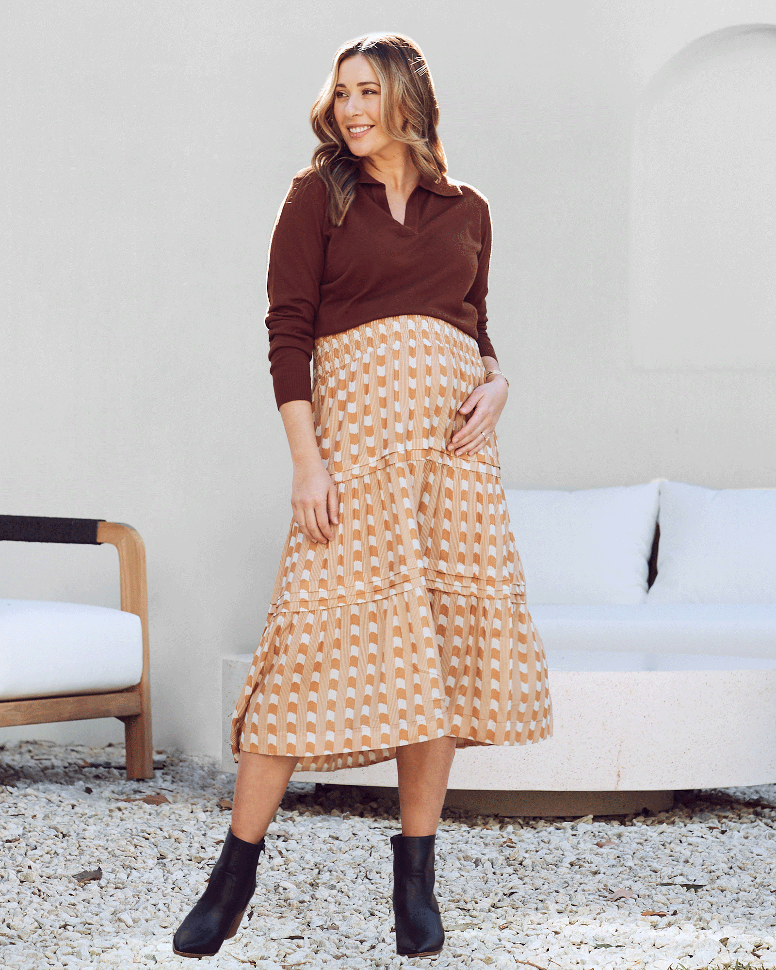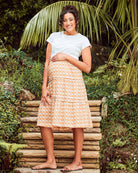 Tracy Maternity Ruffled Midi Skirt in Sandstone Stripe