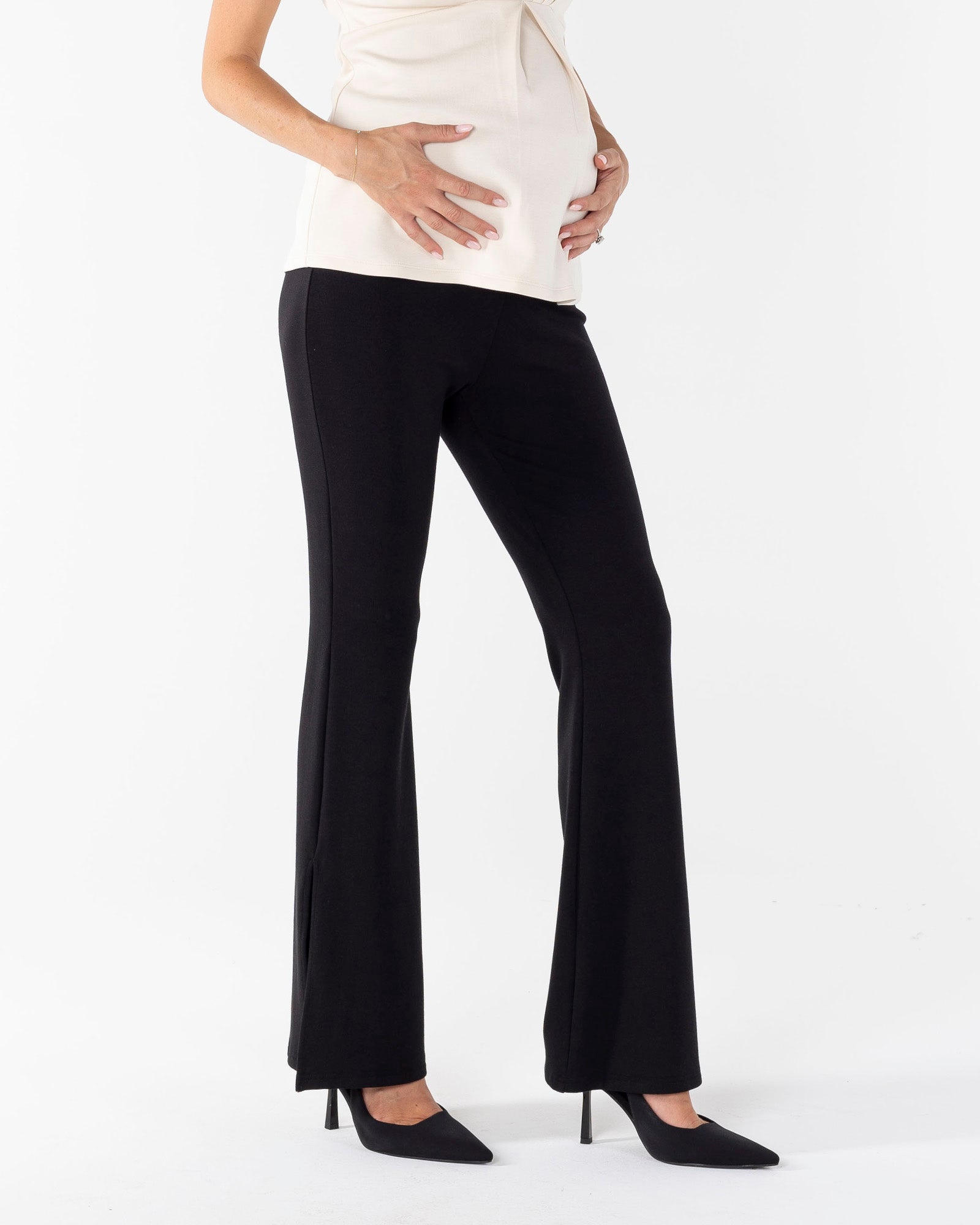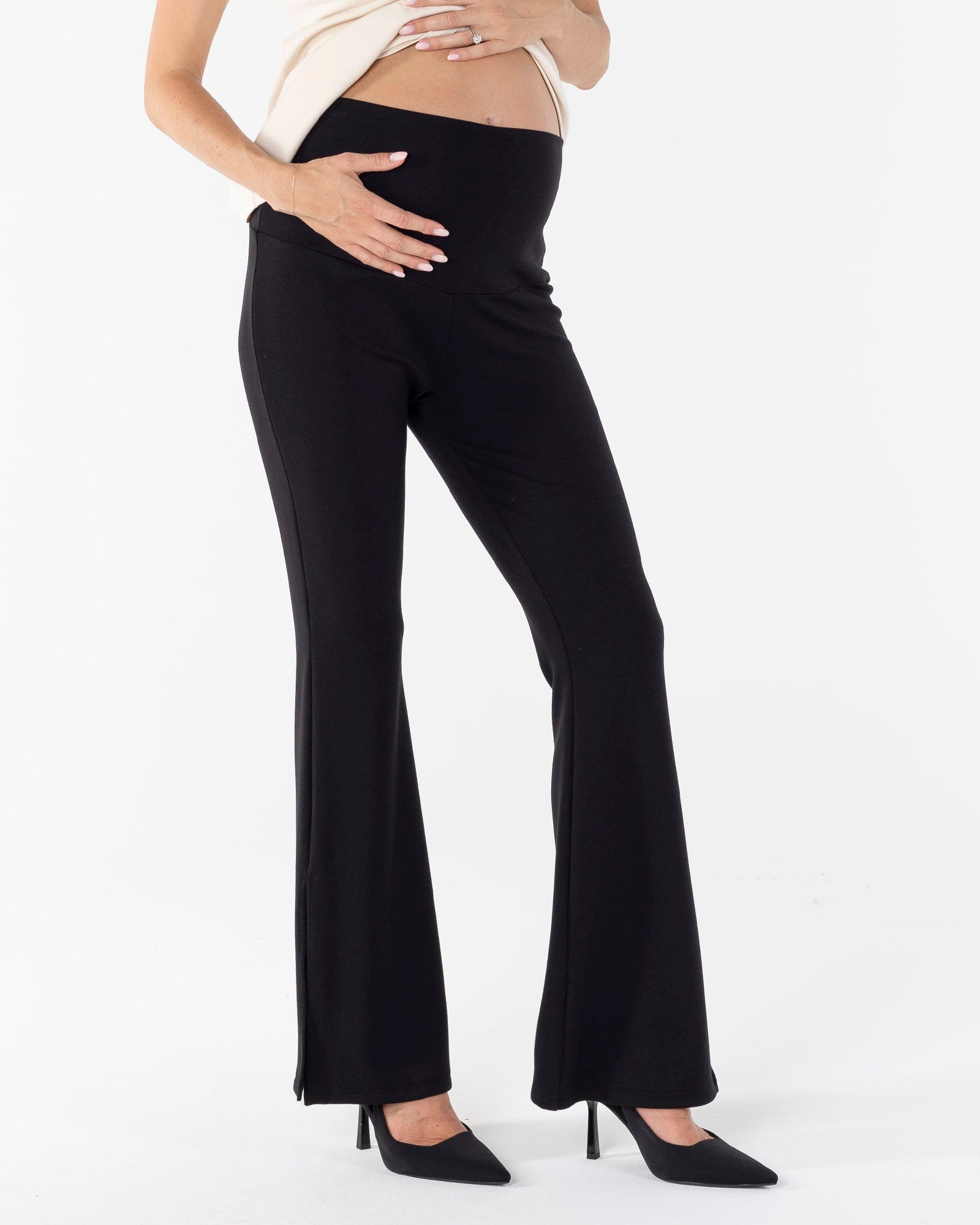 Black Side-Split Maternity Flare Pants – Stylish and Comfortable for Working Moms