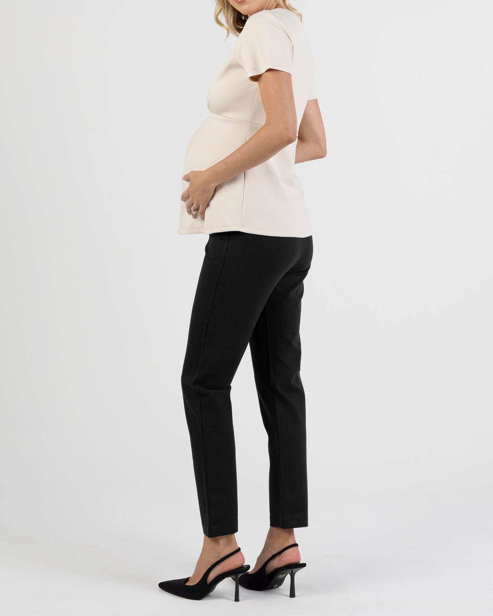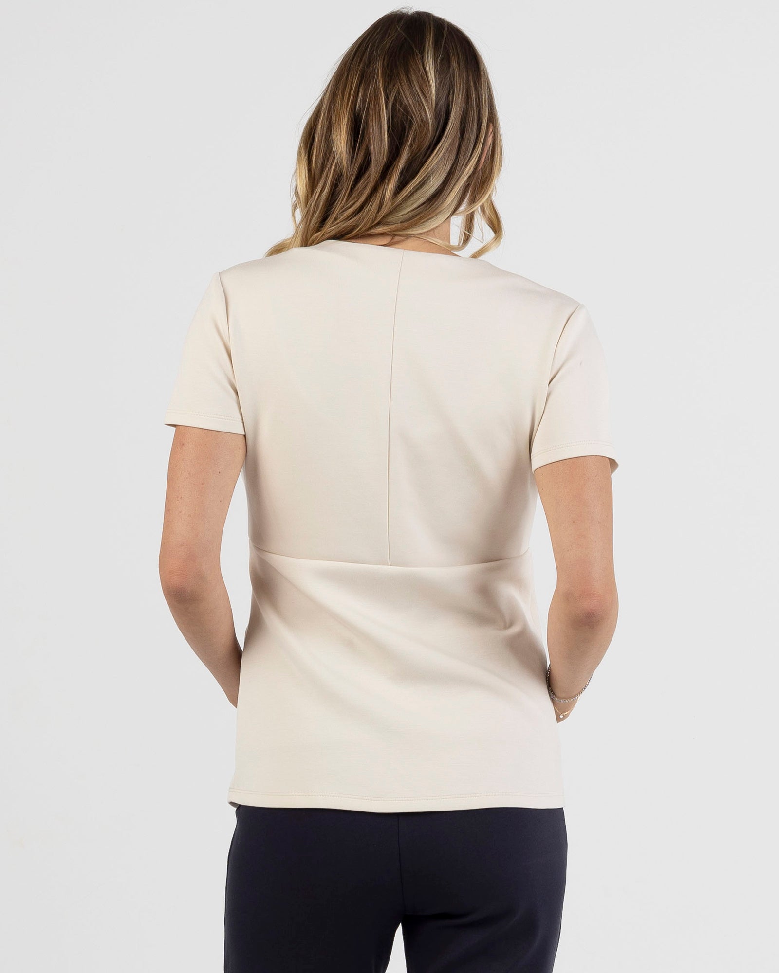 Soft Ponte Maternity V-Neck Work Top – Light Beige